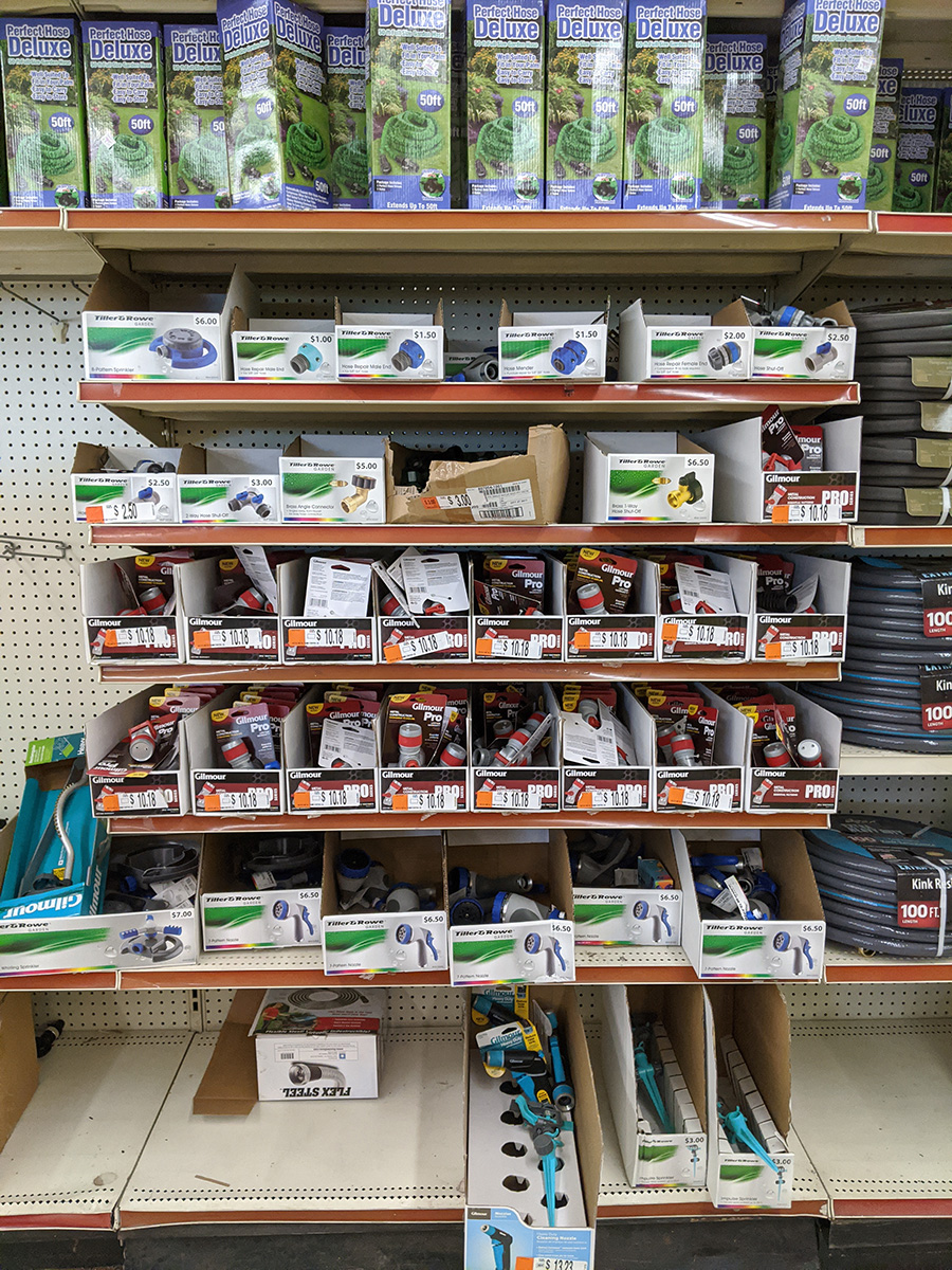 over the past few days i don't know how many times my sister asked me if i wanted to go to aldi's, as if she still doesn't know how to drive there even though we've already gone a few times. but today i actually had a reason to go; not to aldi's but the nearby harbor freight to pick up a brass hose connector splitter ($3.99 after coupon) and some female hose menders ($1.49 each). so i messaged her in the morning and she was more than happy to come pick me up on her way to fellsway plaza.