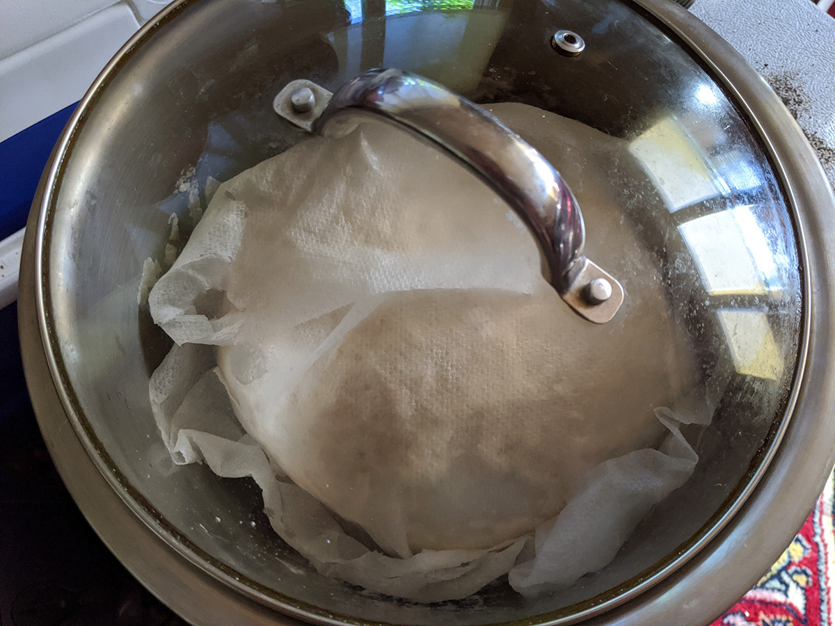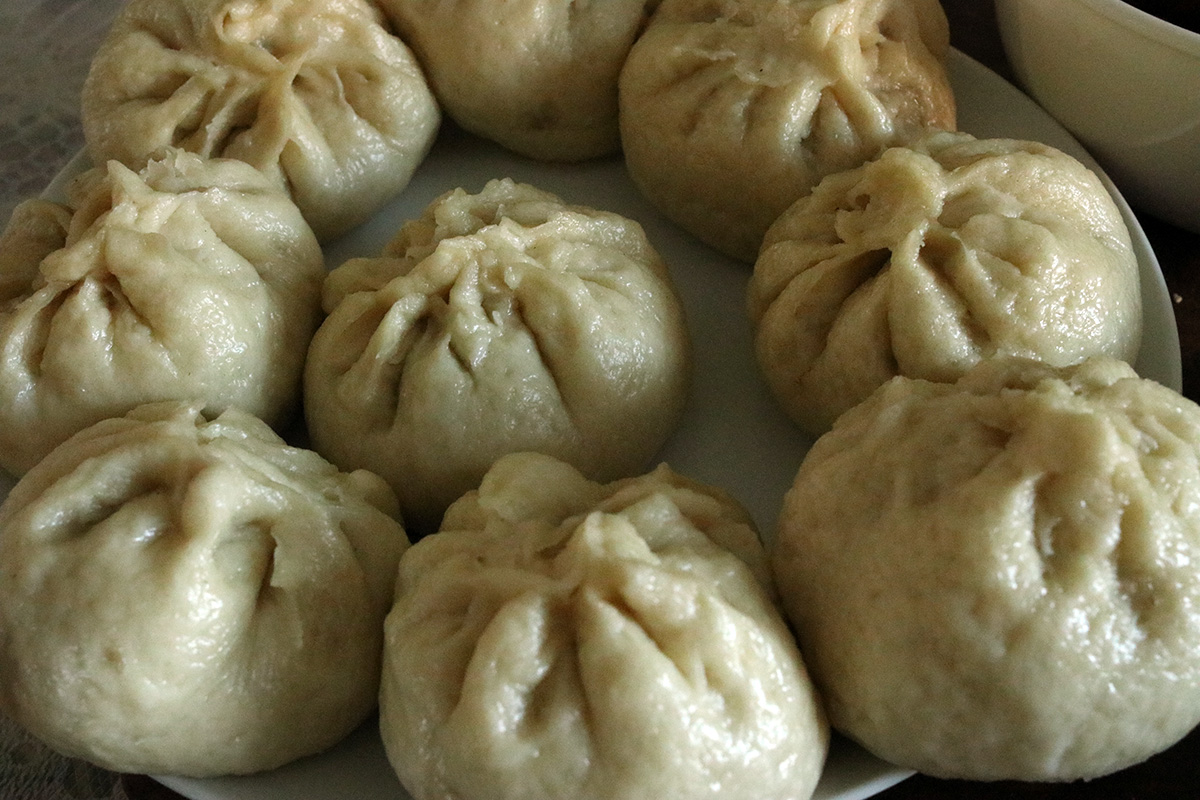 after waiting a while for the dough to rise (my father though maybe the yeast had gone bad, but after moving it to the warmer sunroom, it started to rise), my parents finally made some meatbuns. my mother was very proud of the buns, said they were one of the best she's ever made, and asked me to hurry into the kitchen to take some photos. i ended up eating 4 meatbuns with a bowl of cold mung bean soup.