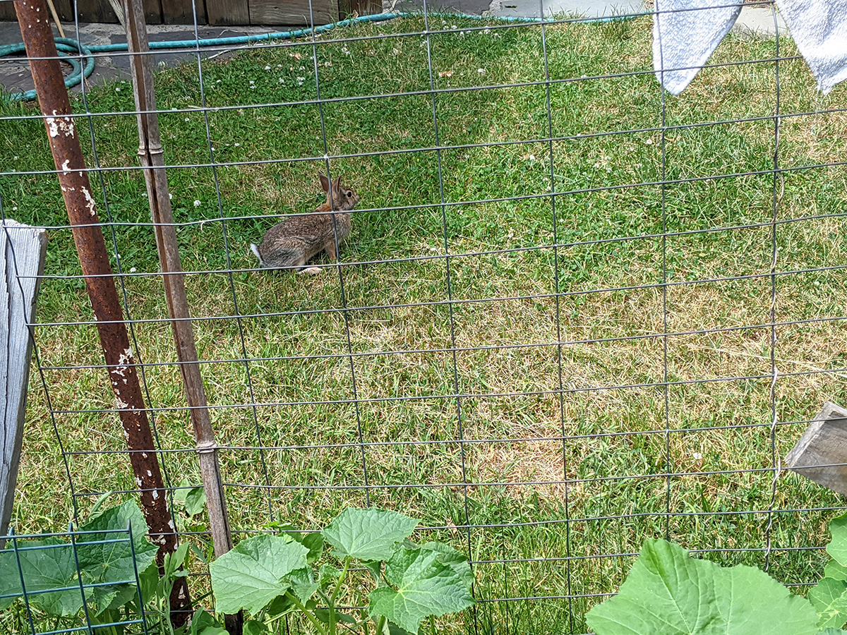 we did manage to drive the rabbit out once more, or so we thought. it was in fact still hiding in the backyard, and once we locked the gate, we saw it back on the lawn eating the clovers. i'm not sure if rabbits are stupid or smart.