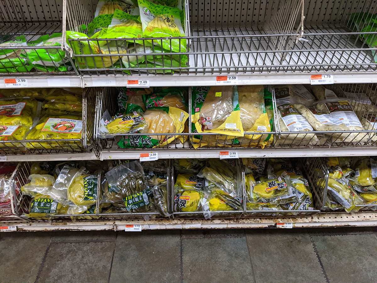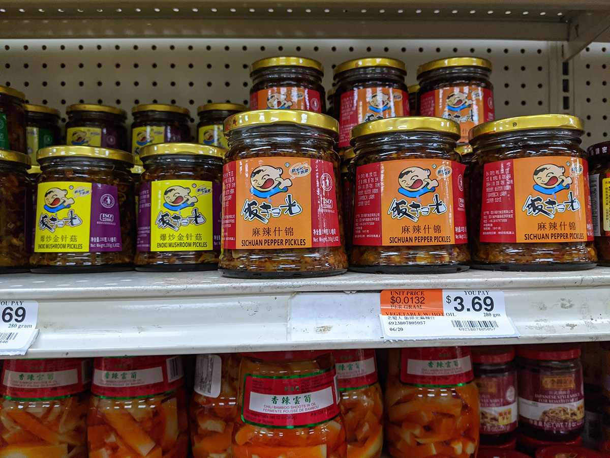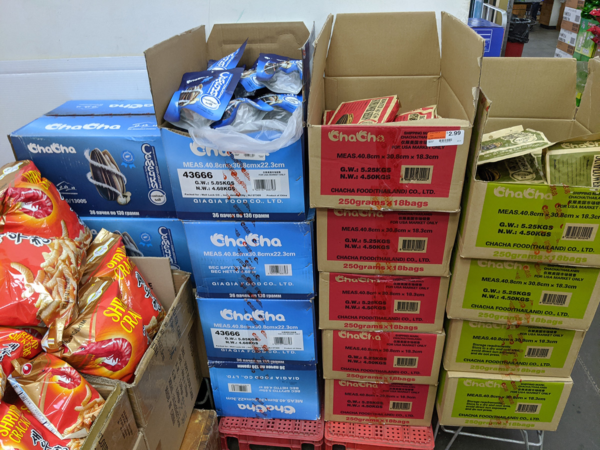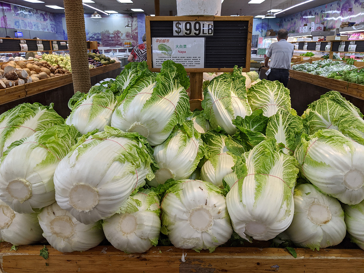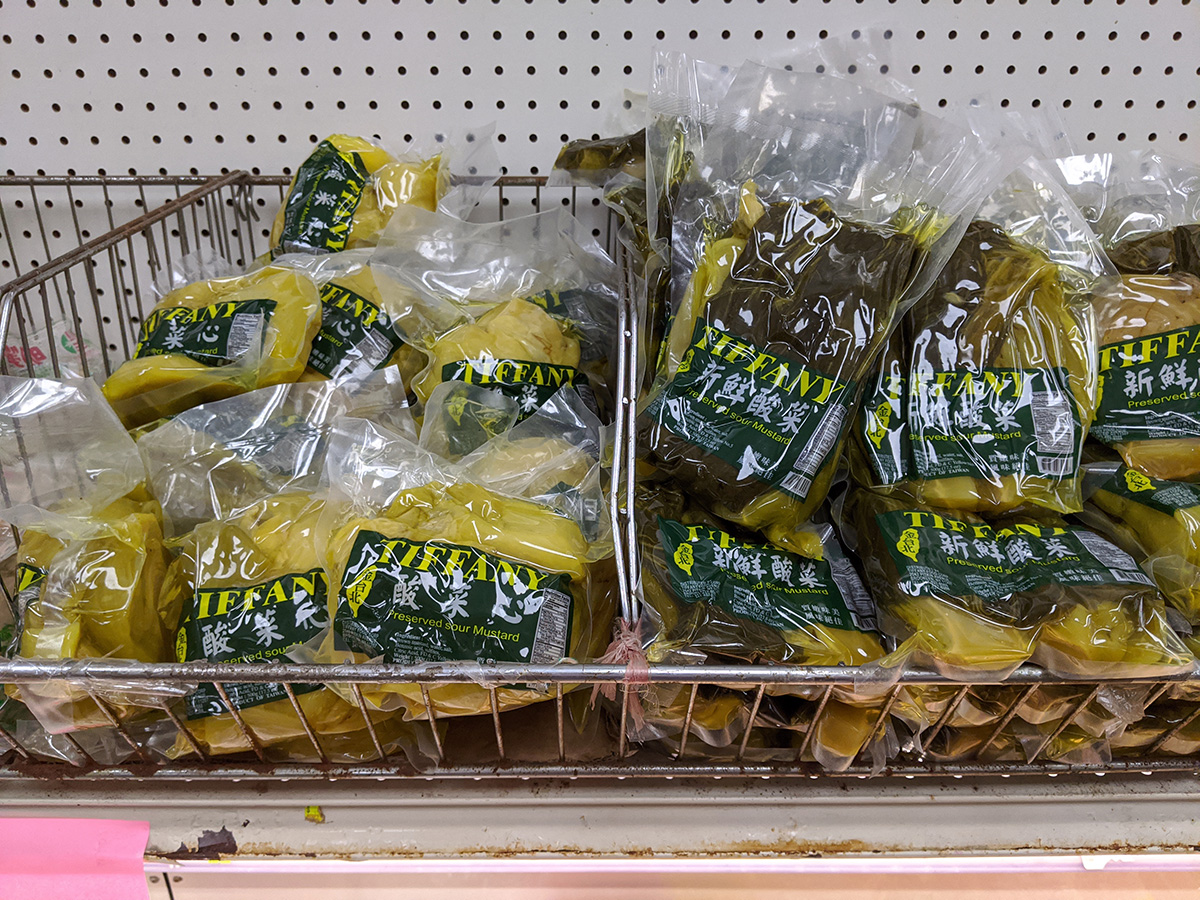 one of the things i was looking for were chacha brand salted sunflowers (blue bag). when my parents came on monday, my mother couldn't find them, which made me worried they'd stop selling them because nobody was buying (except me). i found them in the same spot they always were, right by the door when you first come in. i grabbed 5 bags. i also got some preserved sour mustard and a head of napa cabbage for my mother.