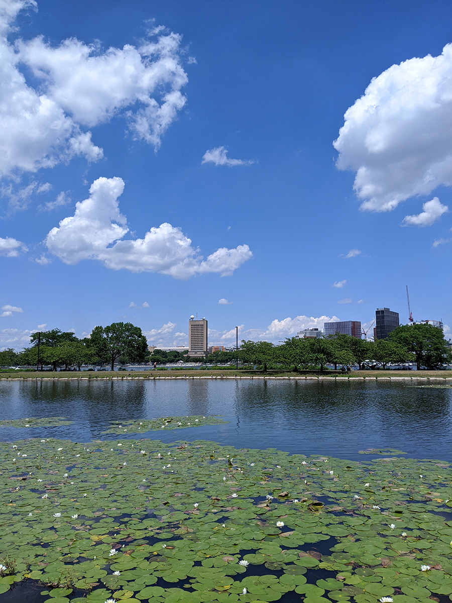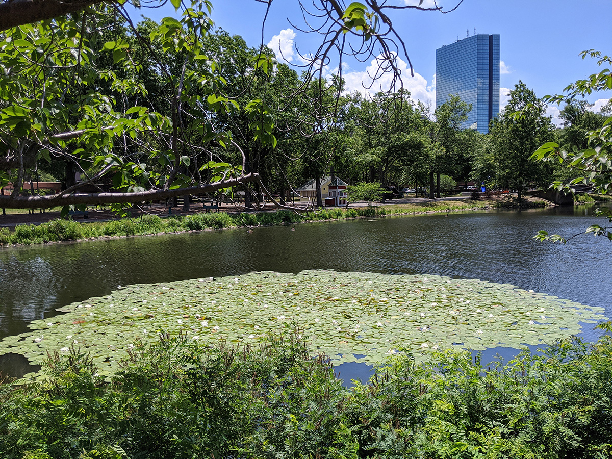 i saw waterlilies in the charles river lagoons. these are native Nymphaea odorata and supposedly the flowers are very fragrant but i couldn't smell anything from the shoreline. the flowers are typically white but occasionally there are pink variants in the wild.
