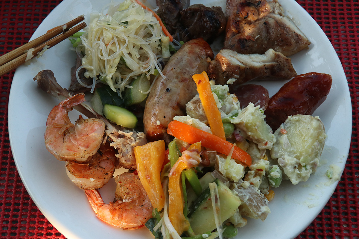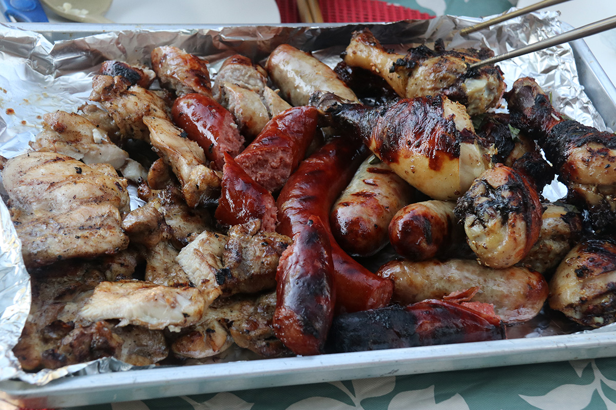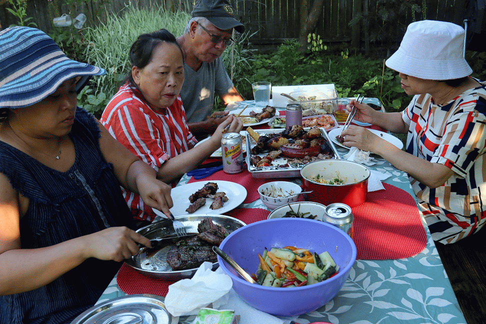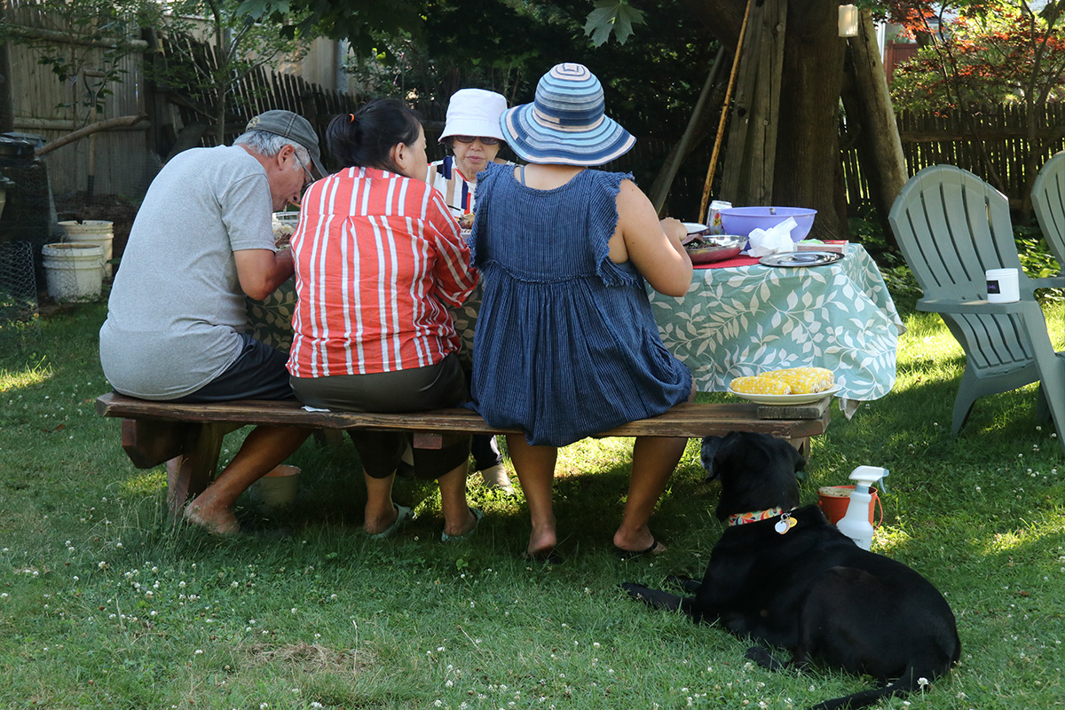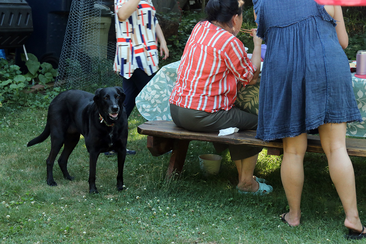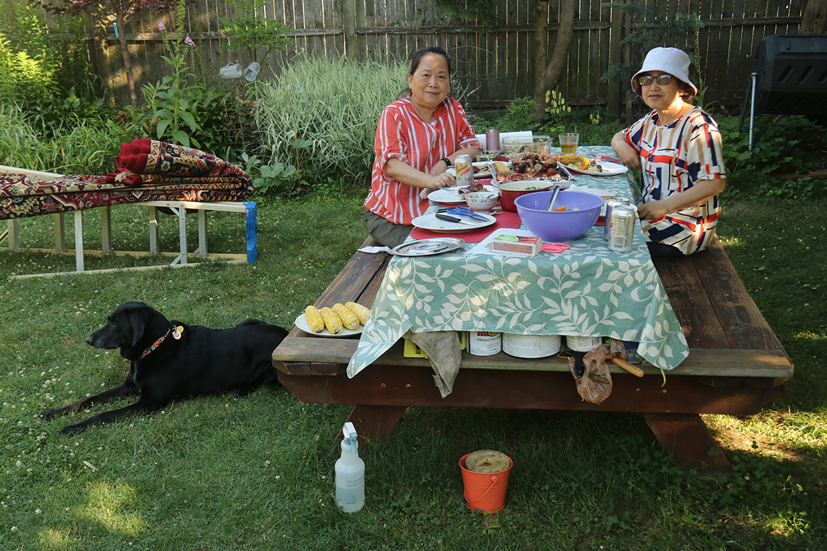 i wasn't expecting much on this 4th of july, not with the annual boston fireworks cancelled due to the coronavirus. but when i arrived at my parents' place in the late morning, my mother informed me we were having a barbecue, and that she invited my aunt as well. they've been meeting a few times a week at the cafe for knitting projects so my mother felt it was safe. however, she told me that my sister cancelled at the last moment (my sister who was supposed to bring all the food), all because we weren't eating outside because my mother didn't want to get mosquito bites. my mother called my sister back and convinced her to come so the barbecue was still on.