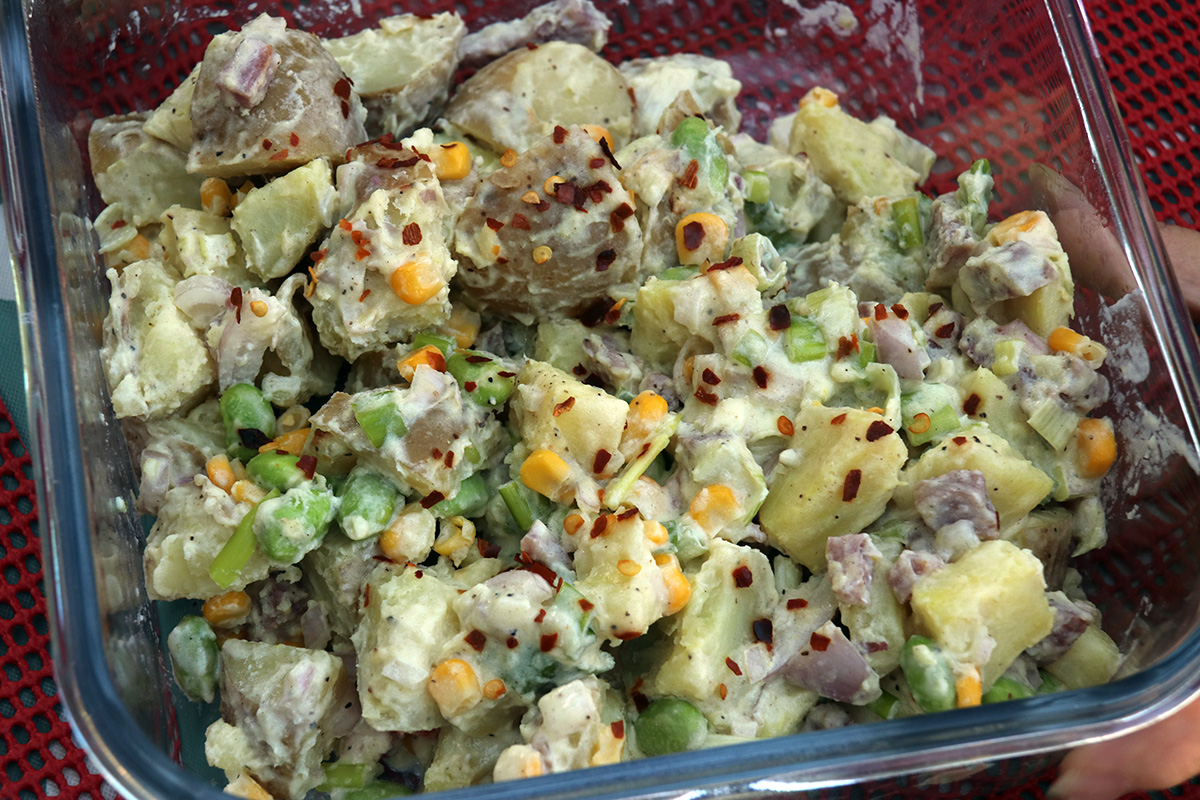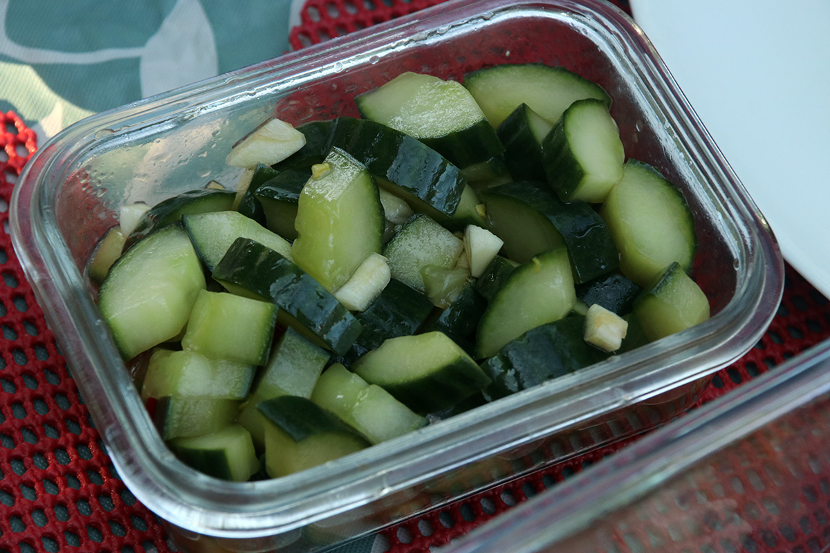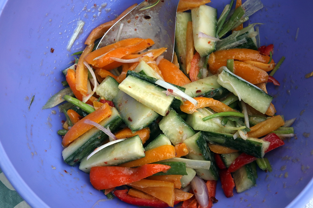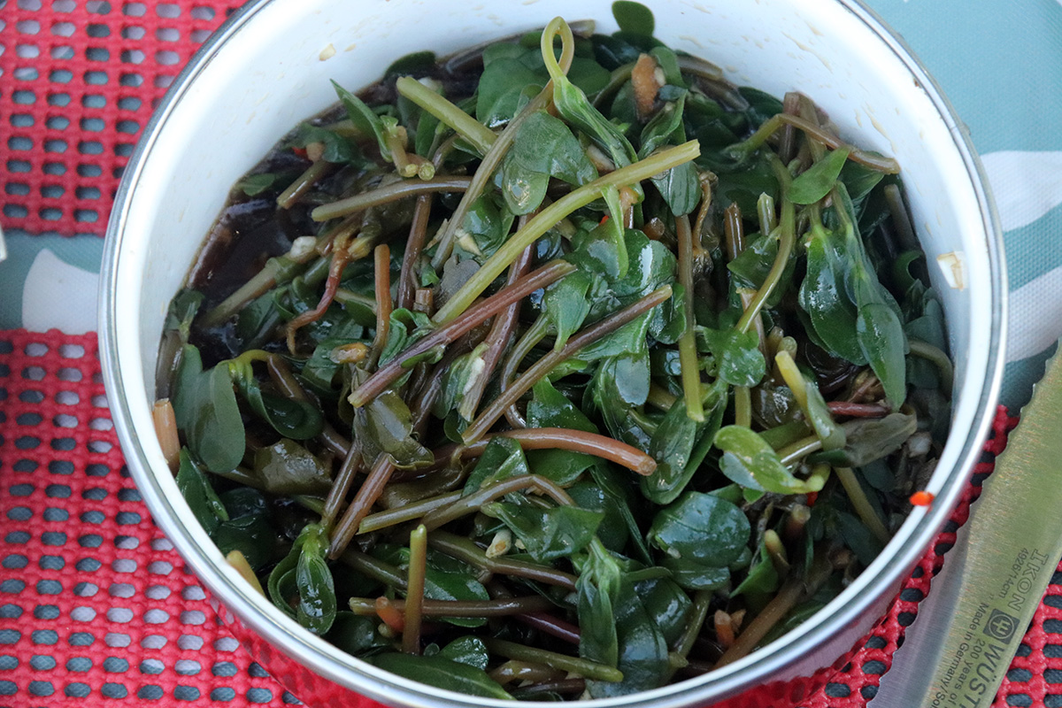 my 2nd aunt came around 5pm with my sister and her dog for the 4th of july barbecue. nothing too exciting, i didn't even make my burgers. the only new dish was a bowl of purslane salad.