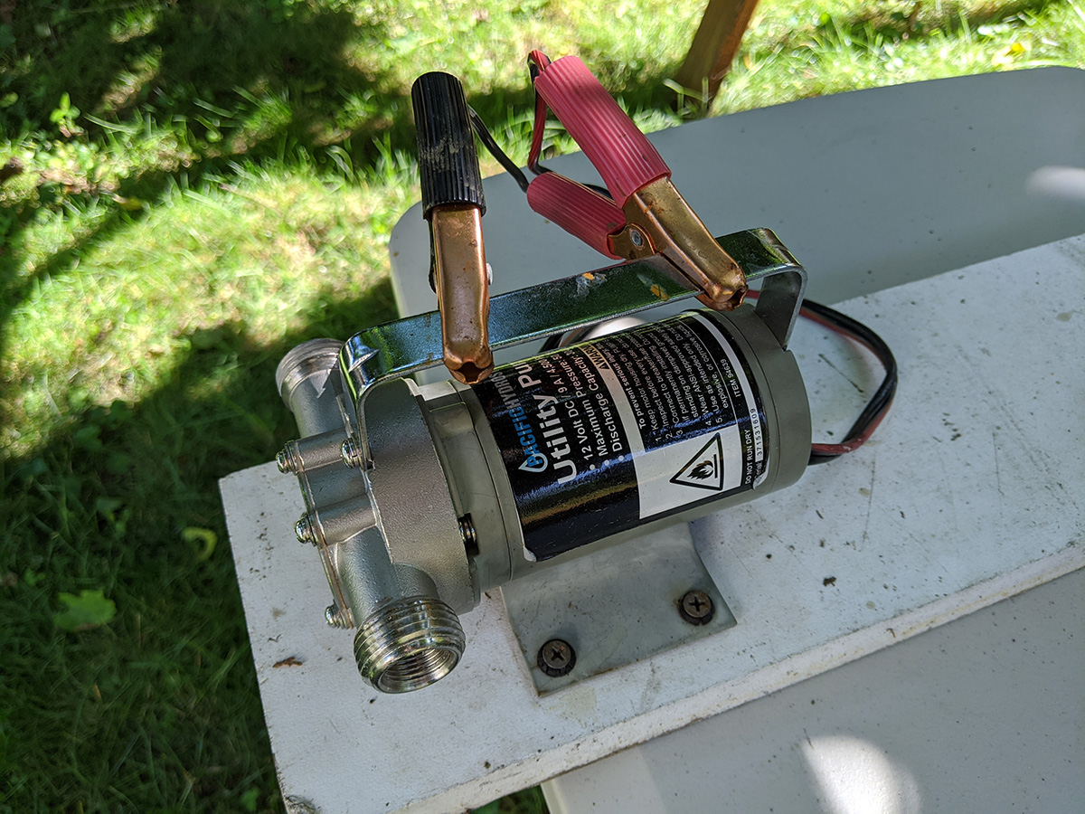 the seaflo on-demand pump works so well, it's a shame we only discovered it until recently, otherwise we could've been using it from the start. the way we used to pump out the rain water seemed ancient by comparison: attaching the alligator clips of our transfer pump to the metal leads of wires running into our basement marine battery that in turn is charged by a 100W solar panel. the transfer pump only ran at one speed, and it was loud, and if you had the nozzle on anything other than full blast, the pump would work even harder trying to maintain that pressure, which in turn would heat up the pump. that's probably what killed the transfer pump in the first place, overheating. the melted wires to the alligator clips is testament of that fact. and did i mention the old pump was loud? sometimes i felt a little embarrassed running it, seems like the whole neighborhood could hear us (though no louder than the ancient central air compressor outside our neighbor's house, that thing is super loud).