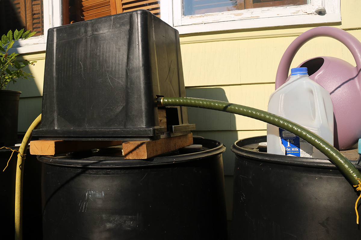 the only thing we did notice was a leak at the outflow valve. we fixed that problem by rewrapping the outflow thread with plumbing tape, that stopped the leak. we attached a quick release hose fitting on the outflow garden hose so we could have a way to easily detach the house if we ever need to use it with the faucet (when the rain barrels run empty). with all the various nylon fittings and strainer and quick release attachments, it made the inflow and outflow valves very long. we put wooden blocks underneath to support some of that weight. we also positioned the hoses so there wouldn't be any kinks going in or out.
