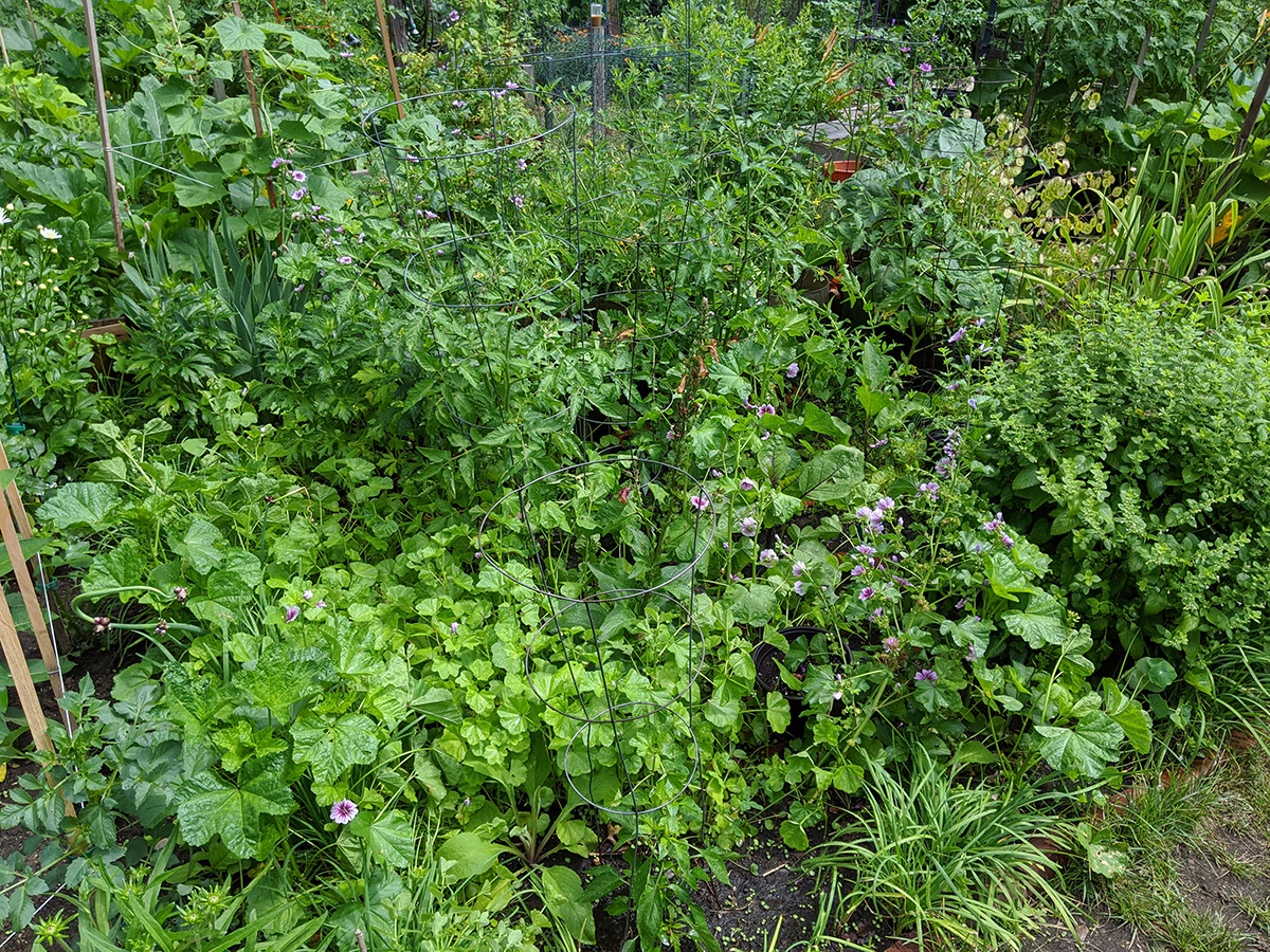 it wasn't just my plot, but everywhere else in the garden, plants were thriving. dave and EJ's plots put mine to shame, their plants even more monstrous than my grow bag japanese eggplants. in EJ's garden they have squash plants so large they take up half the plot. in dave's garden he already has small japanese eggplants, about 4" long.