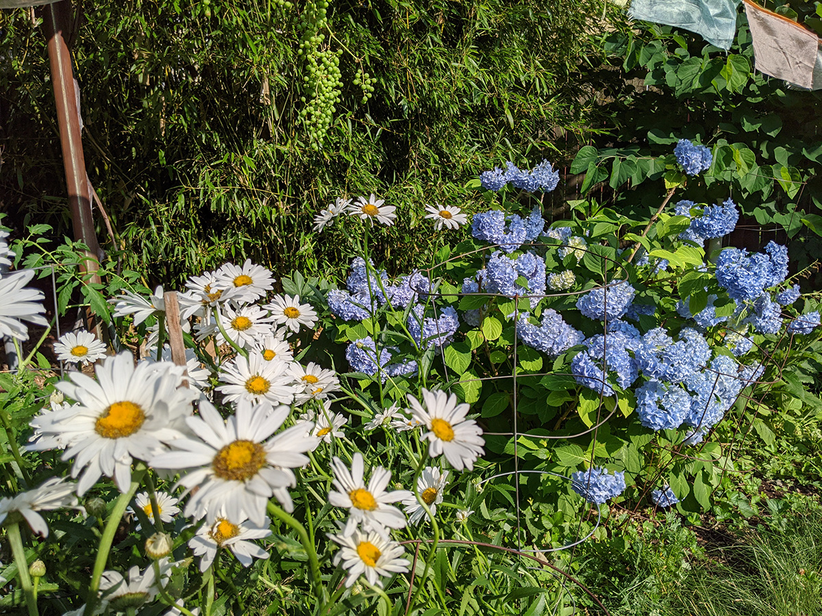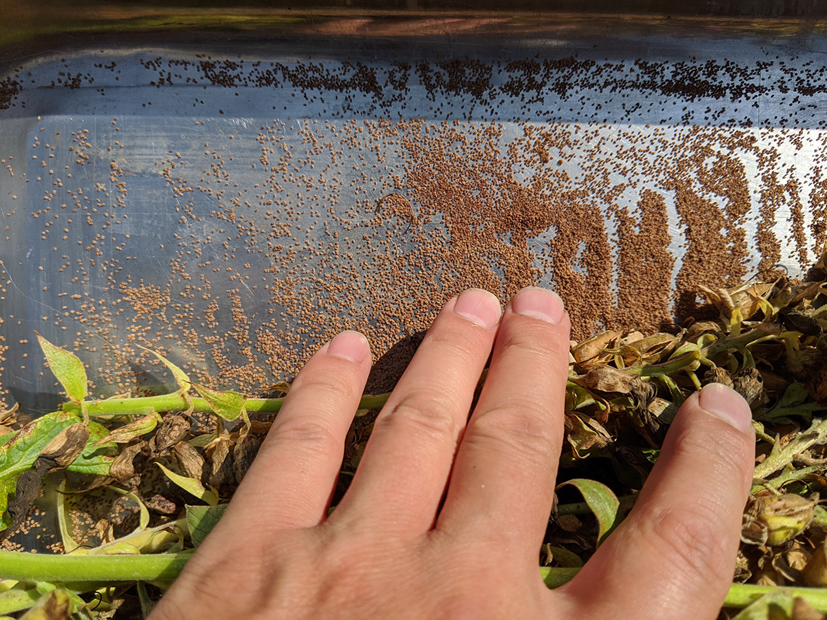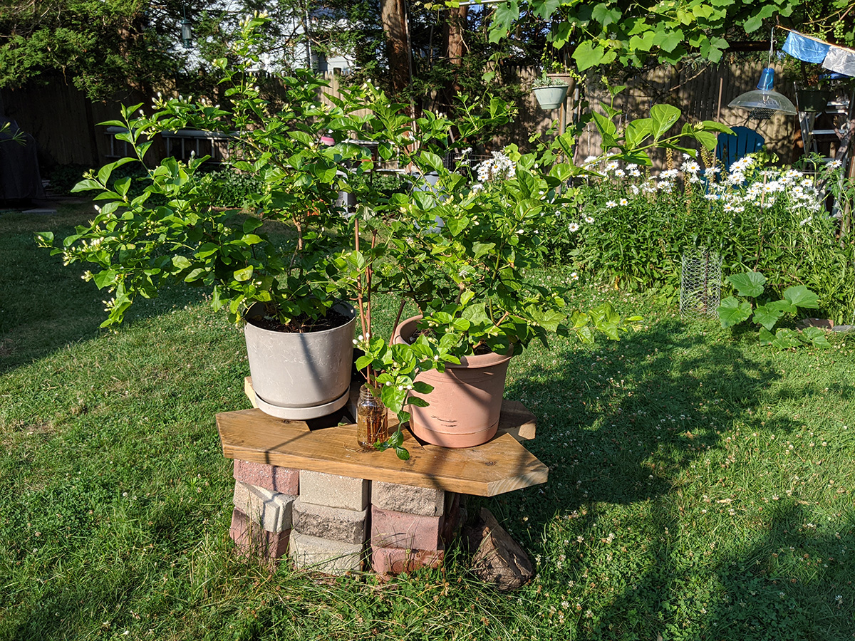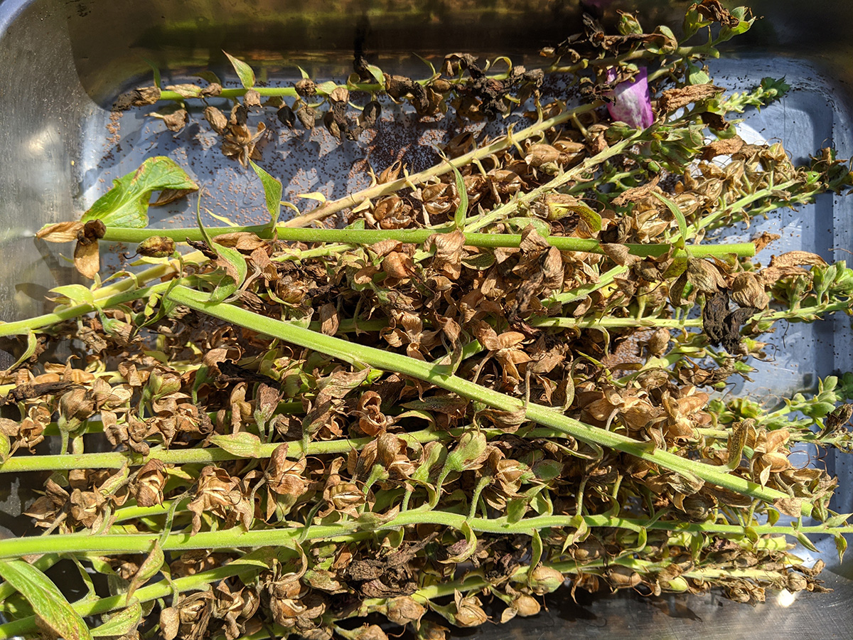 i did a lot of weeding, from the raised beds to the perennial beds. i checked the squash and cucumber plants for vine borer eggs (front a few, not too much). when i was in belmont on monday my father moved one of the jasmine plants so it was sitting on top of the unused firepit. today i got some wooden planks to expand the platform and put another jasmine plant on top, since this is the sunniest area of the backyard. i moved the A-frame ladder back to where it used to be, by the ornamental grasses. i planted two sets of zucchinis in RB4. i collected most of the foxglove seeds. i planted the toothache plant seeds maureen sent me and soaked my tamarind seeds. i planted some more cilantro in the RB4 side plot. i mixed half a gallon of Bt solution and sprayed all the squash and cucumber plants.