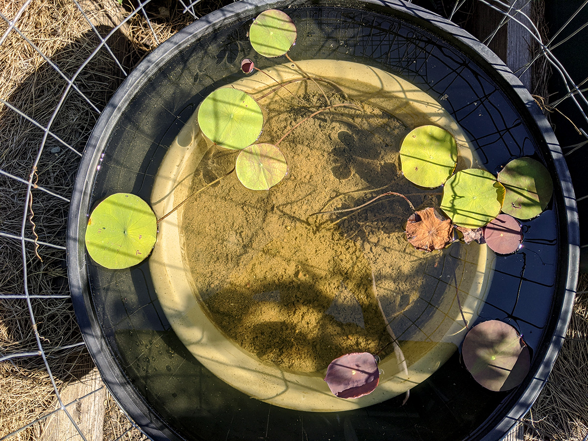 the lotuses are doing their own thing. i'm kind of surprised none of them have formed any aerial leaves left, i figured we were long overdue. instead, it's been coin leaves after coin leaves. still, summer just started even though the recent spate of hot weather has made it feel like it's been happening longer than it actually has. i need aerial leaves before i can get the go-ahead to start fertilizing, in which case the lotuses will begin to grow even faster.