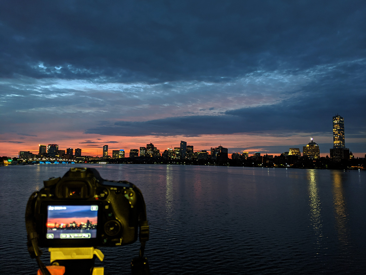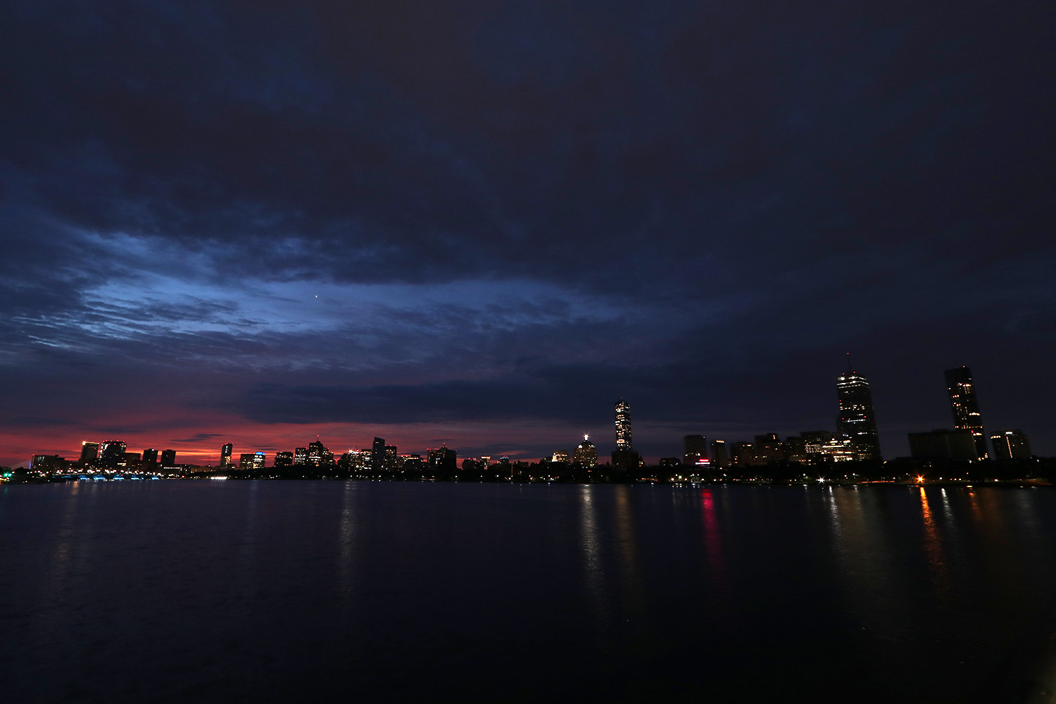 around the 45 minute mark, just when i was about to finish up, realizing i wasn't going to see the comet with all the clouds, the two indian guys came back. "are you here for the comet too?" one of them asked. i recognized them as fellow nerds, most likely MIT nerds as well, essentially harmless. we chatted a bit. i learned that the bright star was actually venus, which was where i was pointing the camera, but northeast is actually 40° to the left of that "shiny" star. tall buildings on the cambridge side obscured the horizon, even had i been looking at the right direction, i wouldn't have been able to see anything. one of the guys said they were coming back tomorrow, when the weather is supposed to be clear, to try to see if i could spot the comet. they were thinking about standing on the far end of the bridge on the boston side, with the hopes of being able to look over the buildings. they asked for my name, i asked for theirs, they gave me two indian names, i told them i wasn't going to remember that.