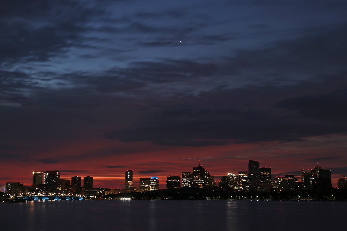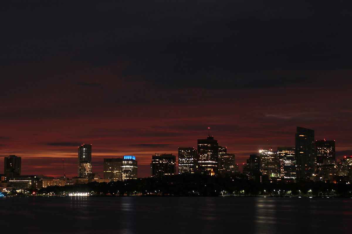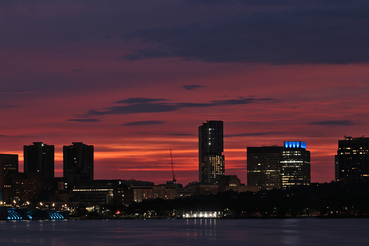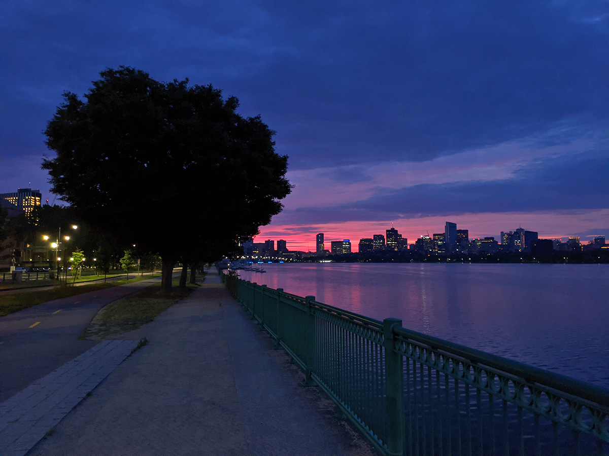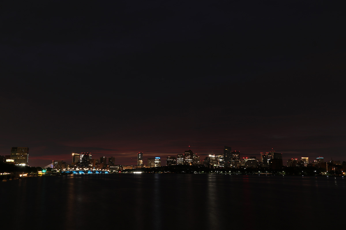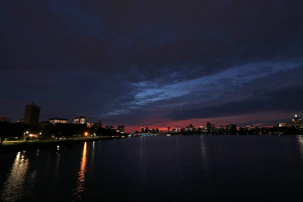 it was pointless going to sleep, since i planned on waking up at 3:30am anyway to bike down to the MIT bridge across the charles river to see if i could catch a glimpse of comet NEOWISE. so i simply stayed up, and around 3:30am i got out of bed to check the weather condition. i didn't think it'd rain, but it was cloudy, it'd be a waste of time going. unfortunately i couldn't get a clear enough view of the sky from around my house so i ended up walking out to the star market parking lot to get a better sense of the sky conditions. clouds obscured a crescent moon, but there were still patches of clear sky. i decided to take a gamble, figured i was up anyway. i gathered up my camera equipment along with the tripod and biked down to the mass ave bridge by 4am.