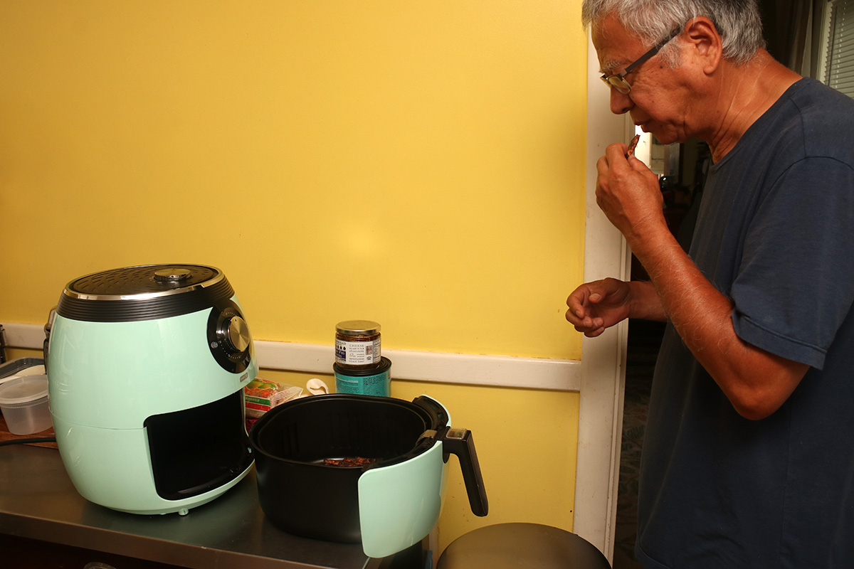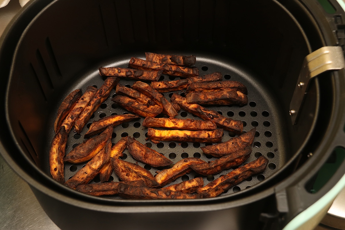 my parents were test cooking some raw sweet potato fries since they didn't have any frozen french fries on hand, the default test food whenever i see an air fryer demonstration. i could smell it as soon as i entered the house, this sort of sweet crispy fragrance. my father overcooked the fries, they looked a little charred and a bit shriveled. they tasted okay, if you can get over the slight bitter charred taste. i ended up eating all of fries.