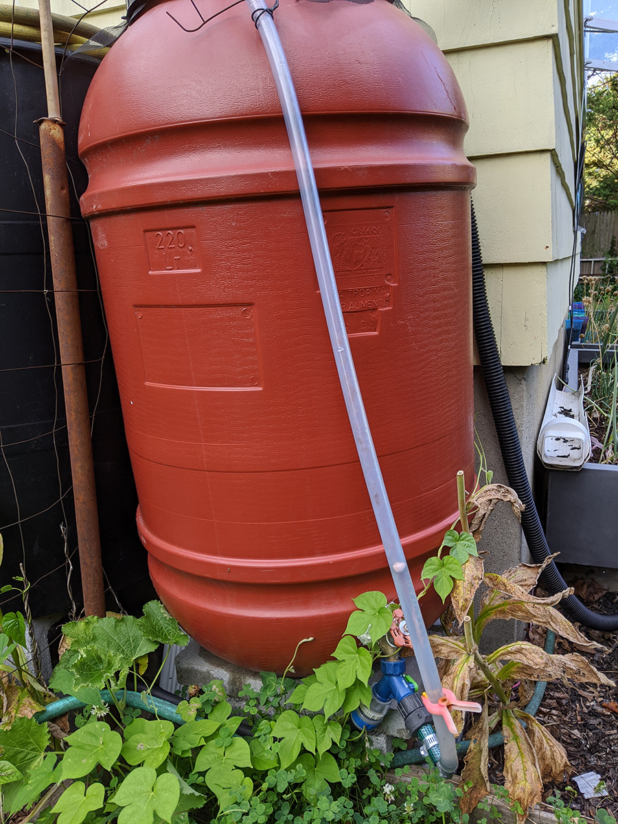 as soon as i got ready to go outside with the umbrella to see how much rain water we would be collecting, the rain had stopped. it rained for just a few minutes, albeit a brief downpour, with emphasis on the brief. while i was taking videos of the rain barrels collecting water from the downspouts the sun was already shining. my father kept saying that had it rained for 5 straight minutes, it would've been enough to fill all our rain barrels. unfortunately, it probably only rained 2 minutes. still, that was enough to raise the water level in the barrels by two palm widths, enough water for a few days at least. good news is tomorrow looks to be similar as today, sporadic downpours. maybe belmont will get lucky and get some rain long enough to fill the barrels.