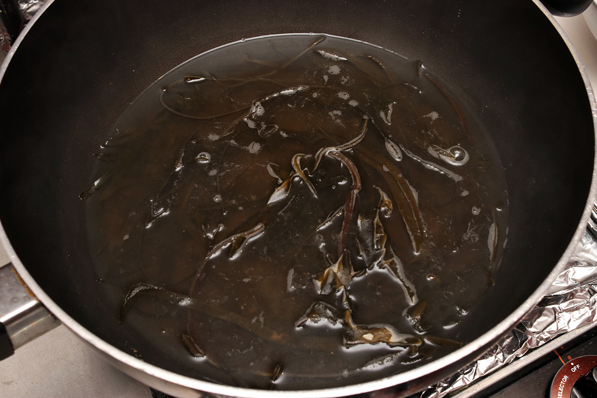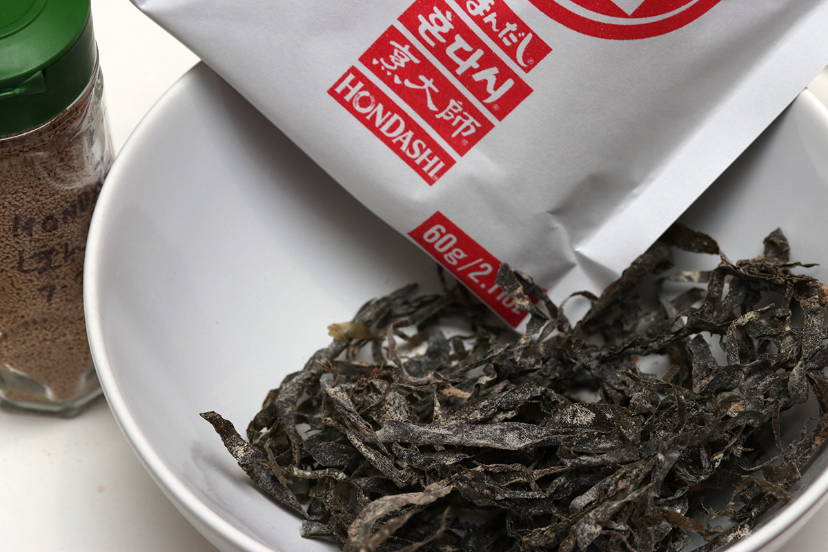 4 cups water 1/2 tsp hondashi powder 1 bowl of dried seaweed