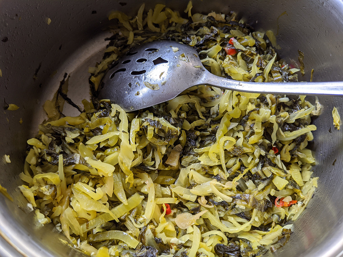 the final result was very good. i used way more seaweed than i needed, and discovered that the seaweed i used wasn't washed so there was sand at the bottom of the pot. all that seaweed also give the sauce a briny seafood flavor which i didn't like. this would be a great winter meal, not so much for summer: the hot sauce made my nose runny and all that starch and protein was pretty filling.