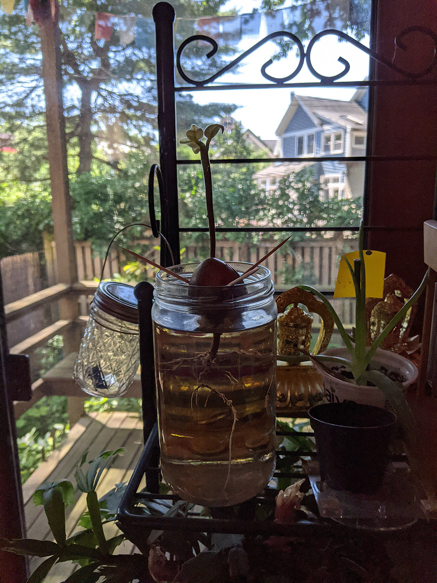 it's been nearly a month since i discovered one of my avocado seeds had sprouted. since then it's gotten a little bigger. it seems to want to grow a stalk before leafing out, as the leaves are still velvety and white (could also be lack of sunlight). i would put it outside to get more sun but i remember the last time i did that and how a squirrel immediately killed my avocado. i could still do it, just need some kind of cage protection. elsewhere, i have a surplus of tamarind seeds. i already have a dozen potted tamarinds, none of which have sprouted yet after presoaking the seeds until they burst. i still have more that are currently soaking, i think i'm just going to bury them somewhere in the yard.