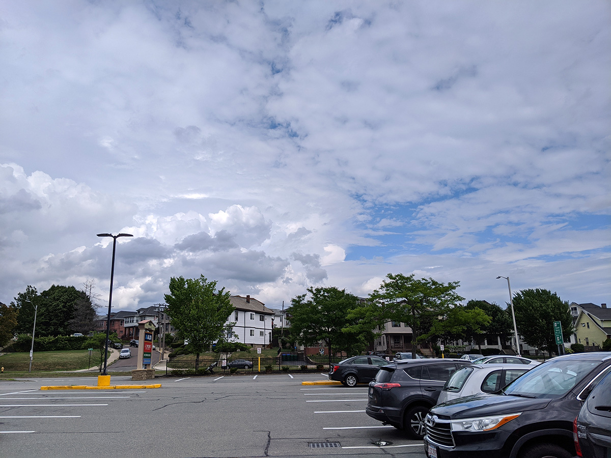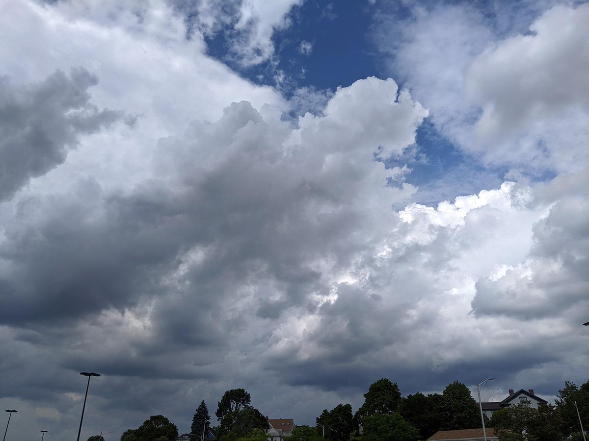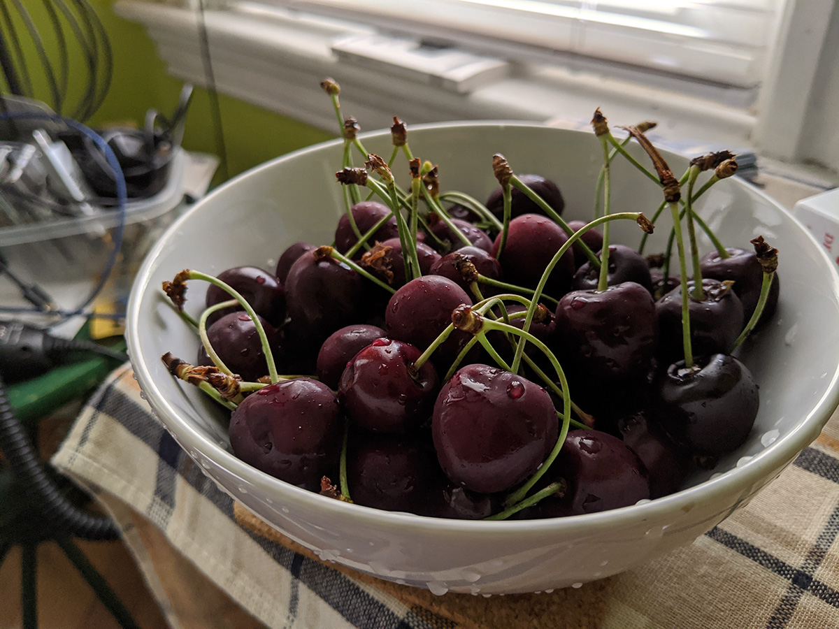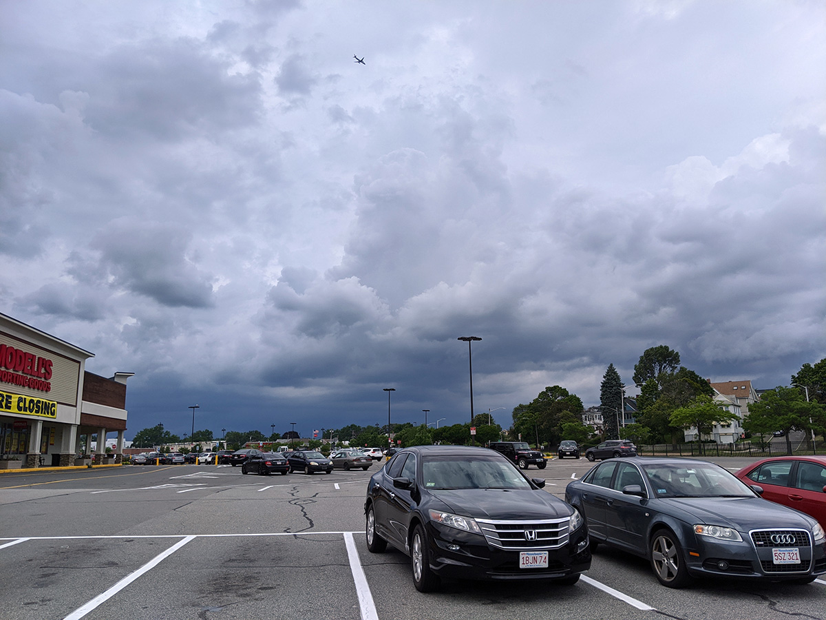 at aldi's we bought $150 worth of groceries. i bought a box of cherries for $6 but when i came home and tried them, they were either bland or sour, total waste of money. leaving aldi's, the air was oppressively humid and hot, the sky overhead dense with storm clouds.