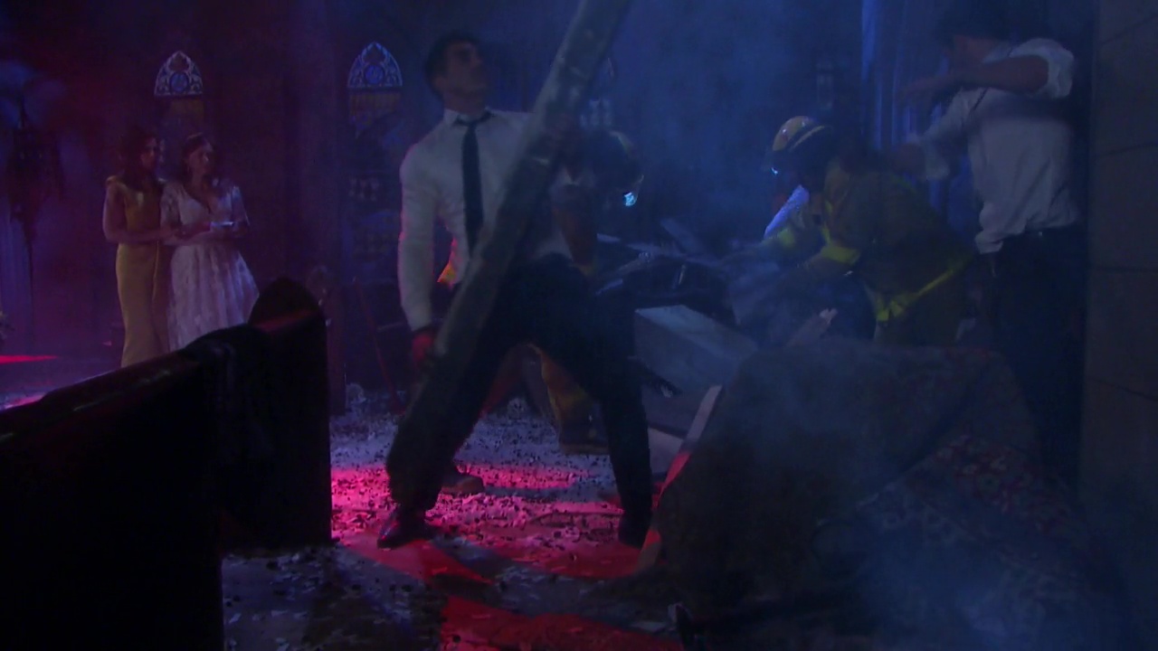 while channel surfing, my attention was diverted to days of our lives. normally i'd never watch soap operas, but there was a wedding, and the bride's breasts were almost bursting out of her dress. then there was an explosion in the church and the groom disappeared under some falling rubble while everyone else seemed to be okay. tall about your drama!