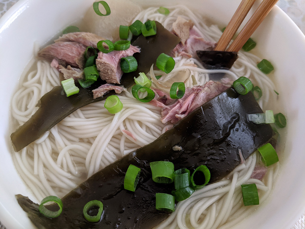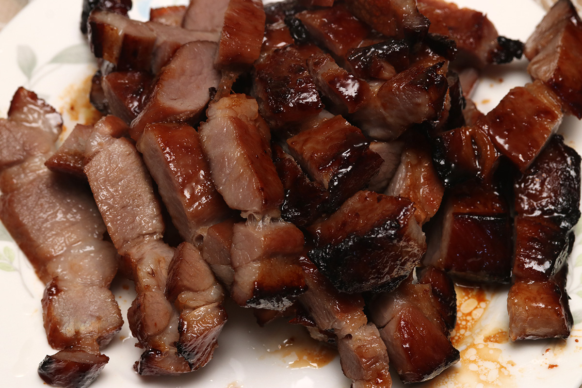 when my parents came home in the afternoon, my mother made me some noodles for lunch as i hadn't eaten yet. she also made some more air fried char siu, her third attempt, improving each time. this time she used actual char siu sauce so it was more authentic but i felt it wasn't charred and crispy enough.
