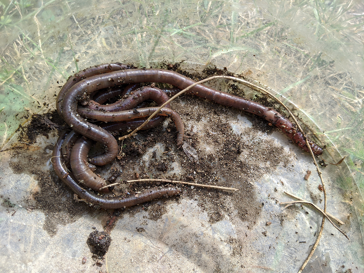 i did a quick survey of RB4, dug up the soil looking for earthworms. it didn't take long to find them, and it didn't take long to identify them as jumping worms, as they squirmed violently to escape the container i put them in. it was too hot to continue digging, and i wasn't going to get all of them realistically. the ones i did catch, i left the container in the middle of the lawn, hoping for the robins to find them. that didn't happen and when i went outside a few hours later, the worms had all dried up.