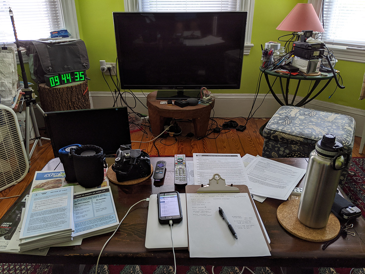 the conference call was at 9am, i had everything set up on the coffee table, ready to go. two supervisors were running the conference call. people said their names as they joined in, and a roll call was taken once the conference began. i thought there'd be a lot of interactions but the call was essentially a verbatim reread of the capstone self-study guide i spent 2+ hours yesterday going over. the only interactive parts was during the handful of roleplay exercises, and volunteered were asked from those attending the conference. i volunteered to roleplay a census reinterview. there was also a last minute covid-19 section that was recently added, i picked up a few good tips, like having the option of calling the respondent from outside the house if they don't feel comfortable answering questions face to face with social distancing. afterwards there was a Q&A. i asked if we could leave notices in the mail slot, but learned that as a census worker we're legally not allowed to touch anything mail related (so the answer is no).