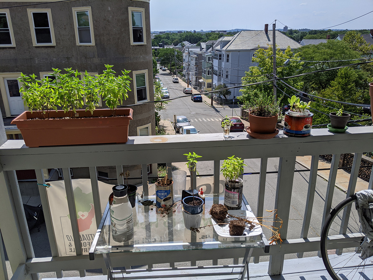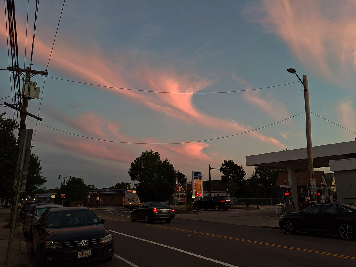 highlights today: visiting a few somerville apartments in the hills were they had amazing panoramic views of camberville; spotting a zero gravity chair in the wild; admiring a porch garden where they also had potted avocados and pineapples growing; spotting a plum tree in the wild with ripe purple plums (i should've asked for a sample); and finding a coffee mug that said "coffee makes me poop" in cooper black font no less. when i came home i was greeted to a wispy pink and baby blue sunset.