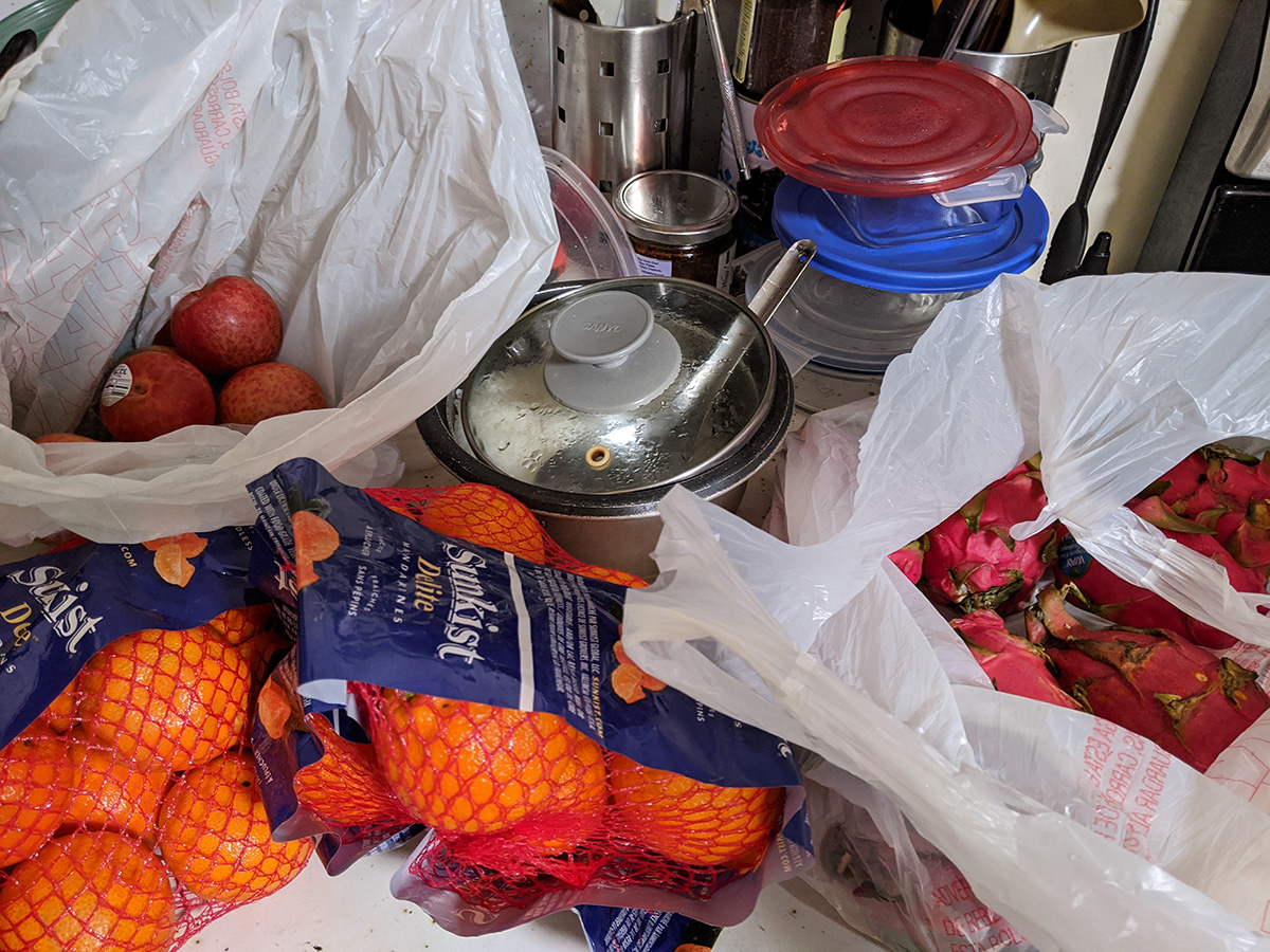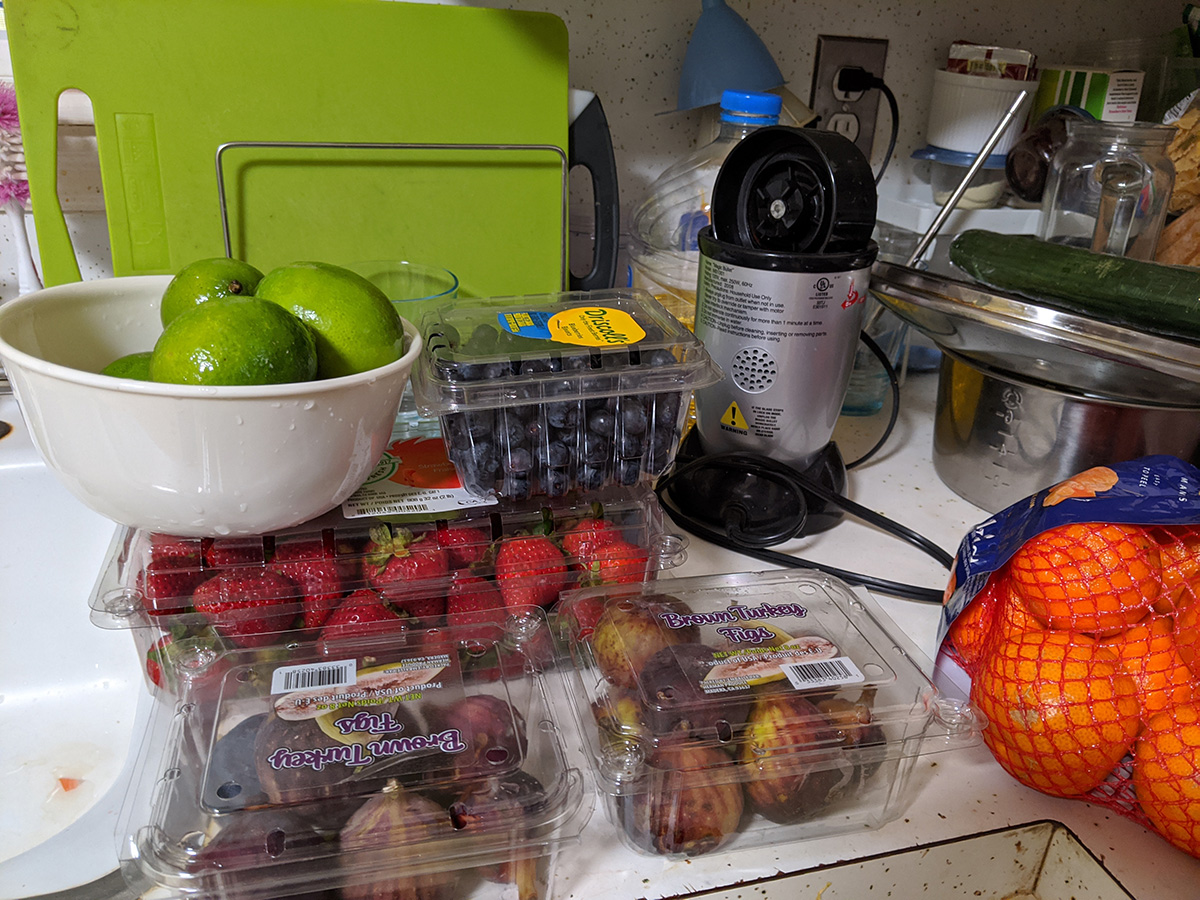 i finally left for boston by 10:45am, to get some cheap produce at haymarket. i wore jeans and a t-shirt. i was almost there when i realized i forgot to wear my helmet. i arrived there in about 25 minutes. i didn't see anything interesting but i left with: 10 pluots ($2), 2 bags of sunkist clementine oranges ($2 + $3), 8 dragon fruits ($4), 2 english cucumbers ($1), sleeve of garlic ($1), 7 limes ($1), box of strawberries ($2), box of blueberries ($1), and 2 boxes of brown turkey figs ($4). i started heading back home by 11:40am, got back by 12:10pm.
