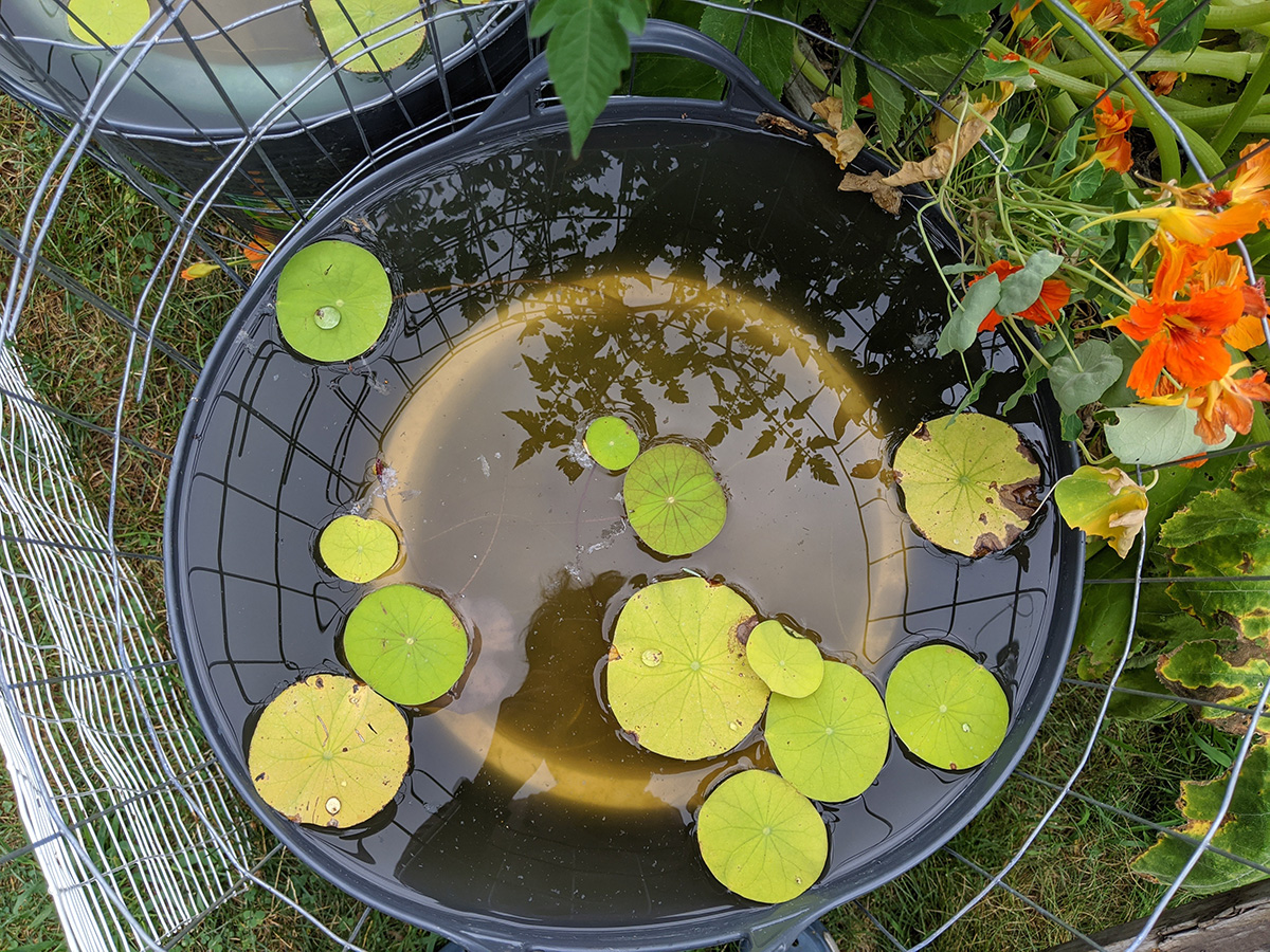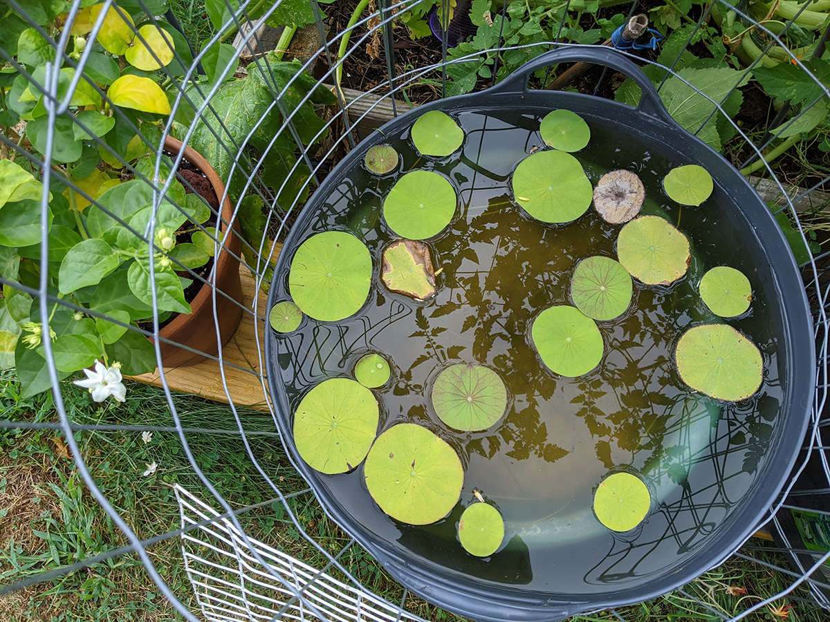 there wasn't much gardening to do. this time of year, it's basically just waiting to harvest when tomatoes/eggplants/zucchinis/peppers are ripe. i did refill the lotus barrels as the water level had decreased. still no aerial leaves, it's already mid-august. so much for getting a head start germinating lotus seeds this year.