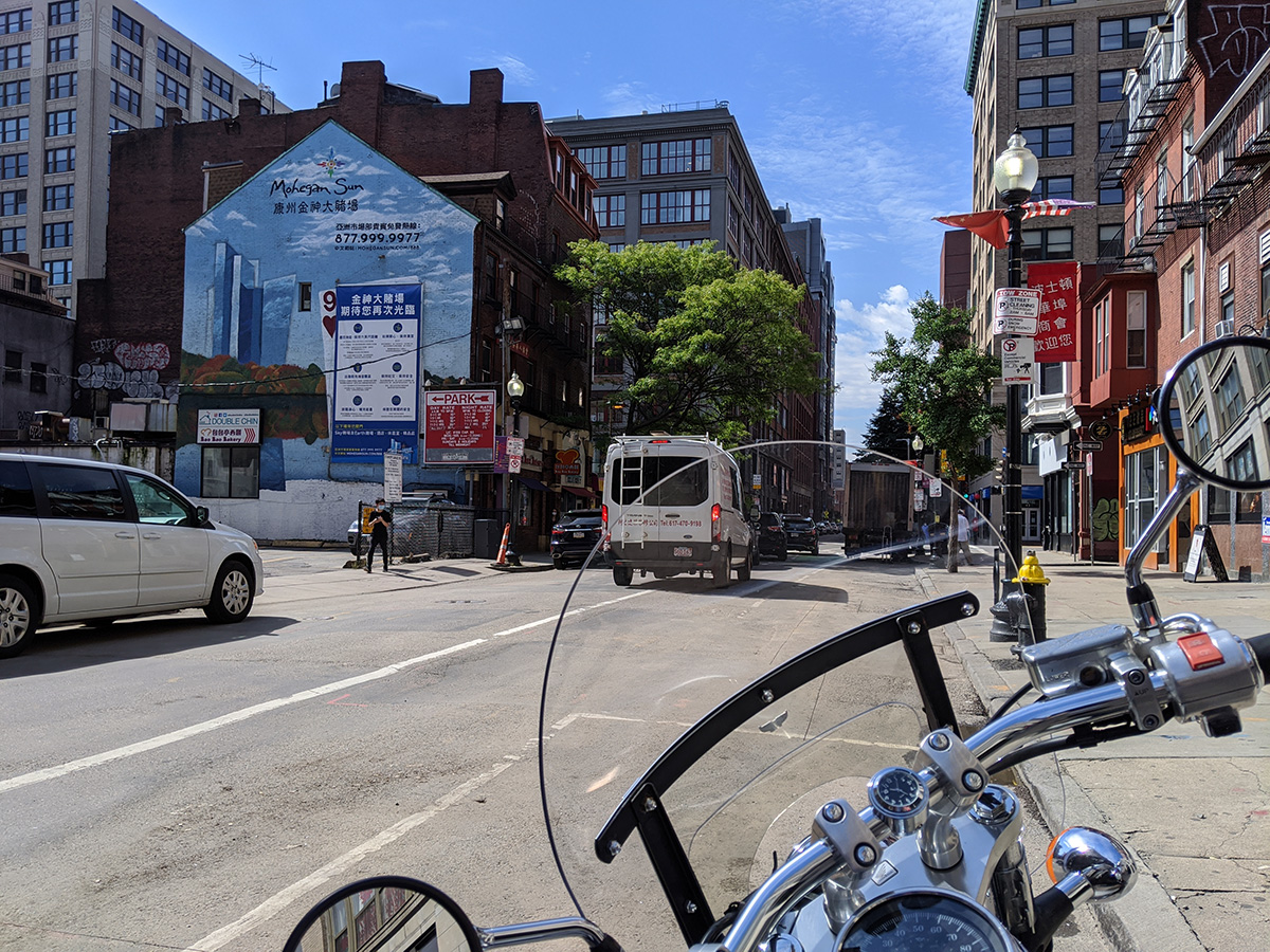 i don't often take the motorcycle into boston, and wondered if it would've been faster going by bicycle instead, since i wouldn't have to get stuck in traffic jams. but there was a 10 minute different accordingly to google maps, and i still needed to work, didn't need a roundtrip bike ride into boston to tire me.