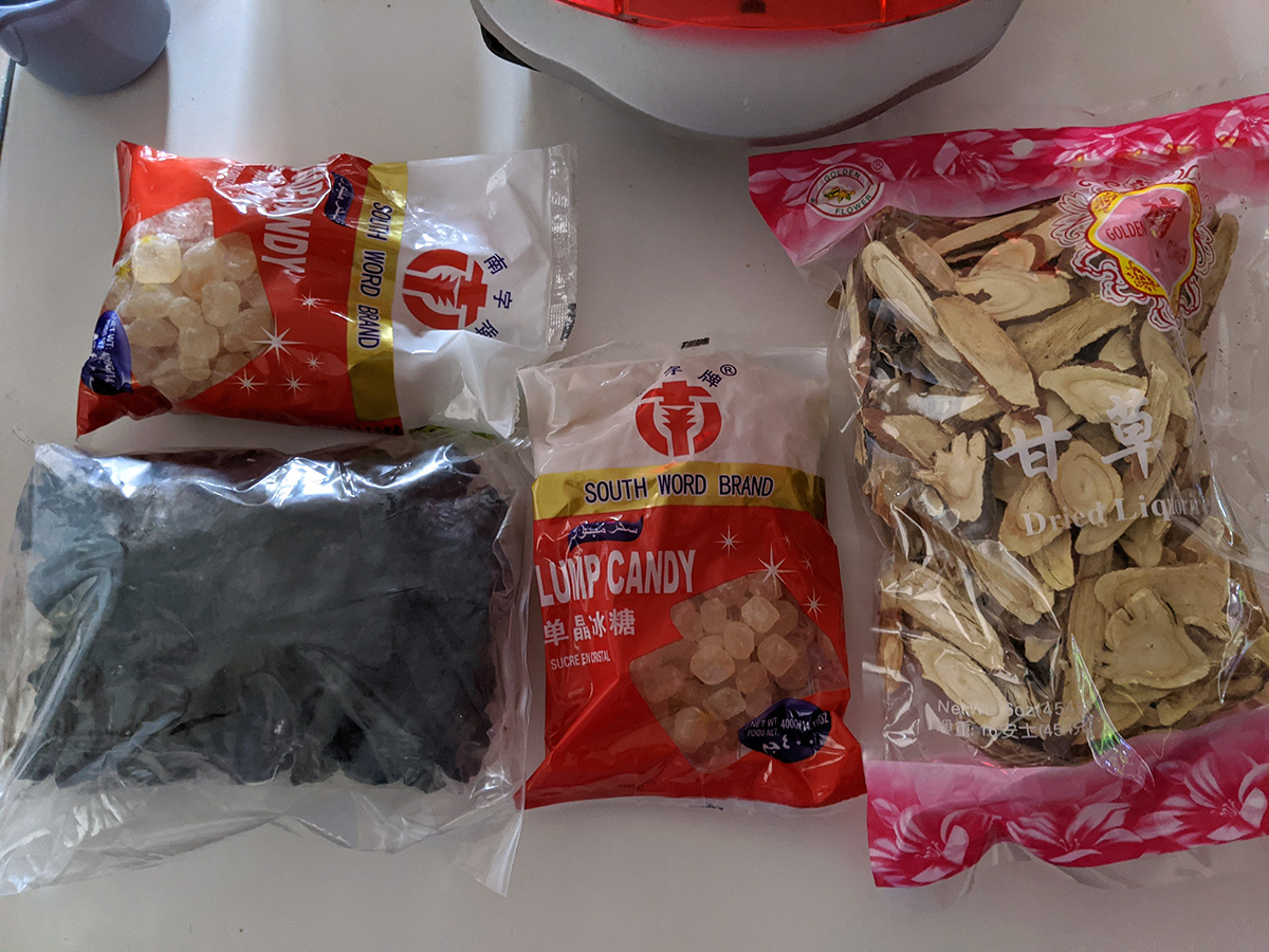when i came home at 5pm i was startled that my front door was open. turns out my father stop by, dropping off some dinner. he also came to check out the bar stool i found, and ended up taking it with him back to the cafe. i also gave him the suanmeitang ingredients, including the smoked plums.