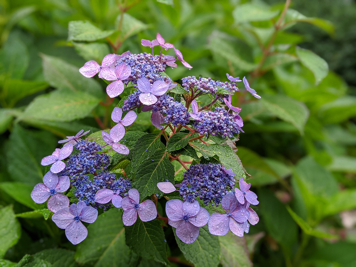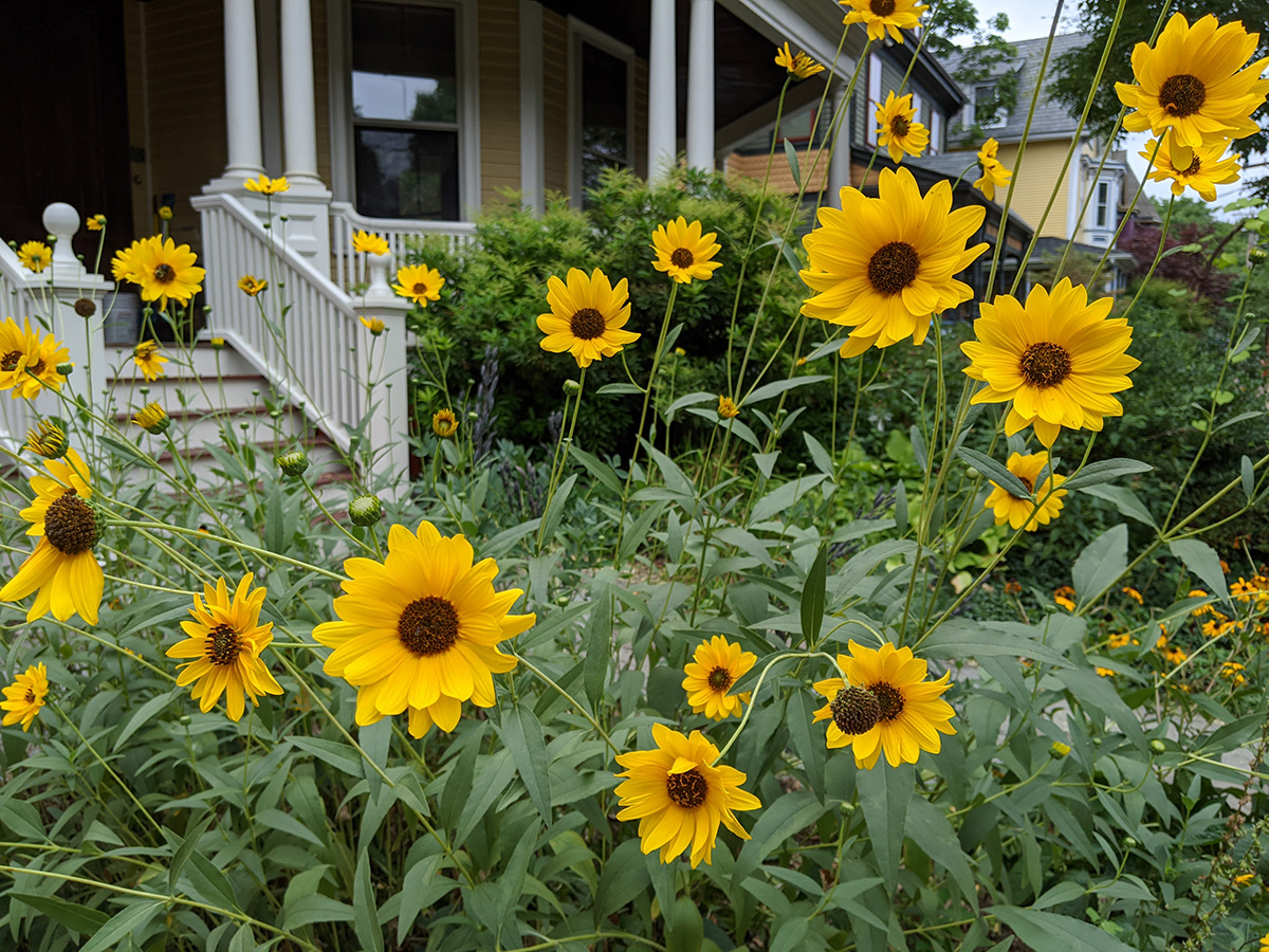 it started raining in the afternoon, a cold miserable rain, one of the rare times this summer when i wish it wasn't raining, but see all the pretty late summer flowers in the neighborhood, i didn't mind all that much.