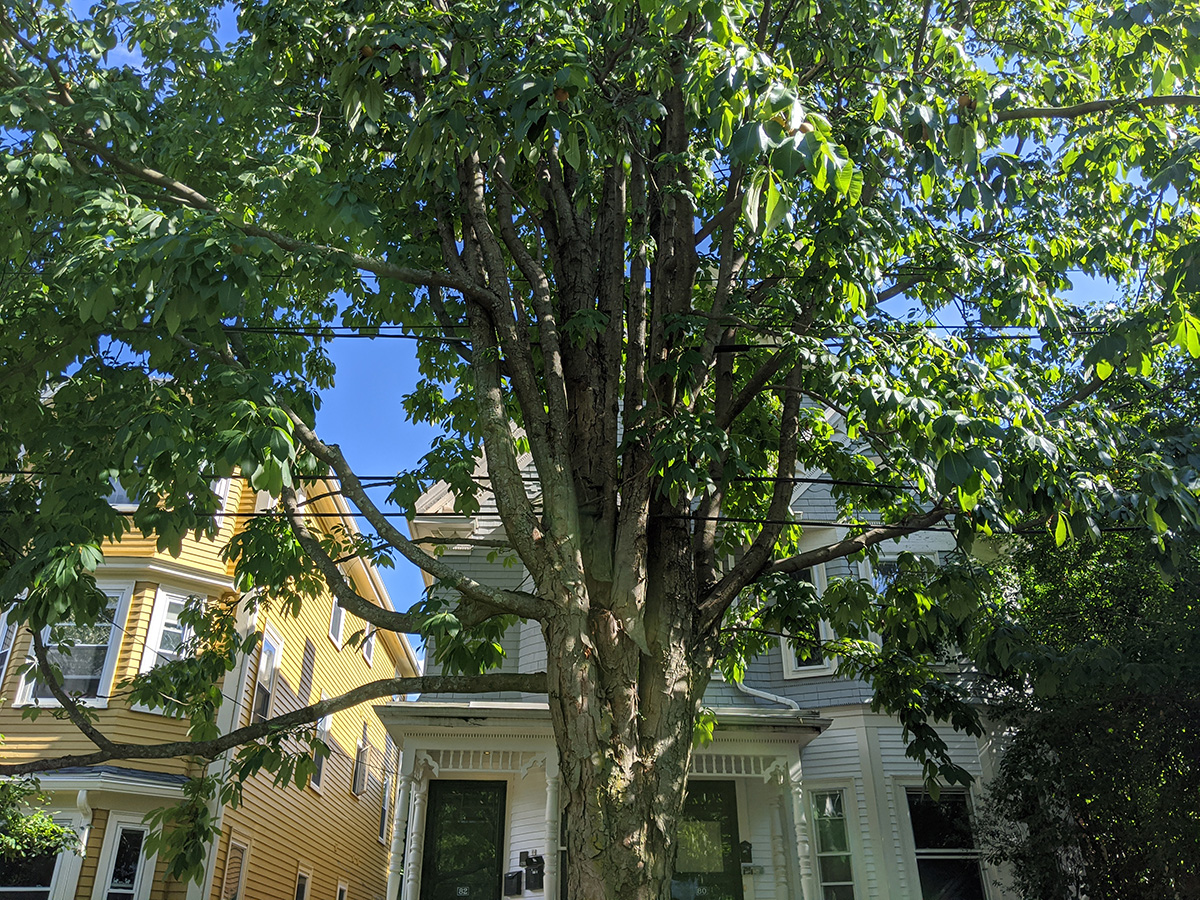 the fifth case was one of those where not only was the case address tenant not home, but so was every other person in that building. i ending up going across the street for the 3rd proxy. an elderly gentleman greeted me, told me that the unit in question had been vacant in april because it was being renovated. before i left, i asked him about the very mysterious street growing across the street that bore fruits that were like soft potatoes about the size of apples that fell to the ground. he told me it was a horse chestnut, and revealed that he and his wife used to live in one of those units across the street and remembered when the city first planted that tree nearly 50 years ago. i picked up one of the fruits as a souvenir.