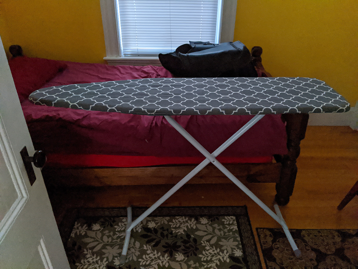 so i spent my morning impatiently waiting for 12pm. i went out for a walk, partly to leave a few pokemon in gyms, partly to see what my neighbors have thrown out when they've moved out at the end of the month. i grabbed an oscillating fan this morning and coming back from my walk i found a new condition free standing ironing board.