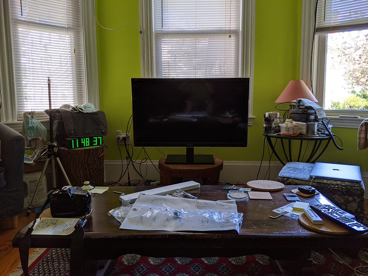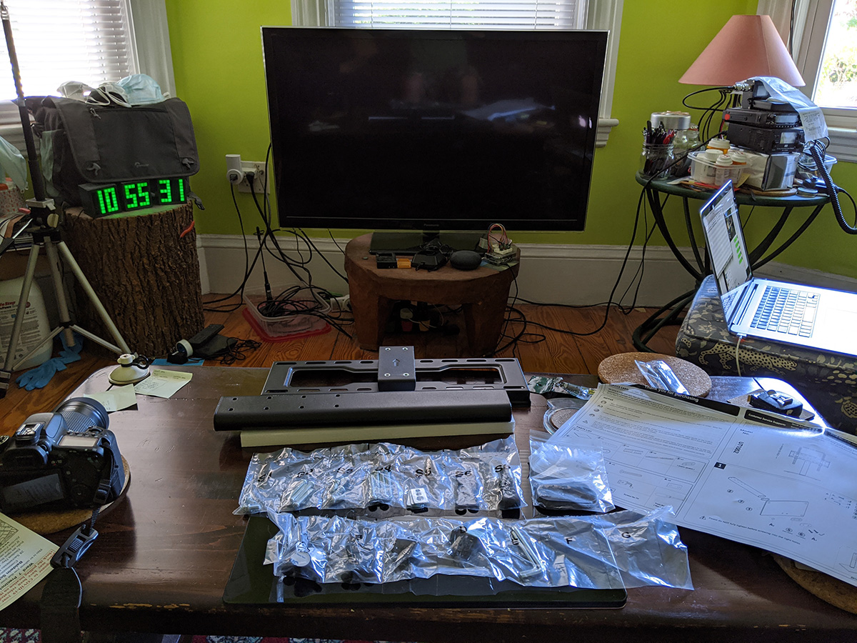 my 5Rcom universal swivel tv stand ($28) also arrived, waiting for me on the doorstep. i spent the rest of the morning putting it together. it looks pretty good, not only is my HDTV taller now, but it can also swivel. i should've gotten a stand a long time ago, it seems like a no-brainer, not sure why i waited so long.