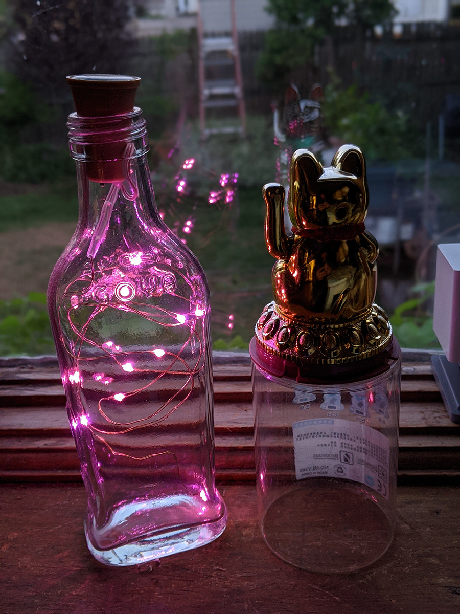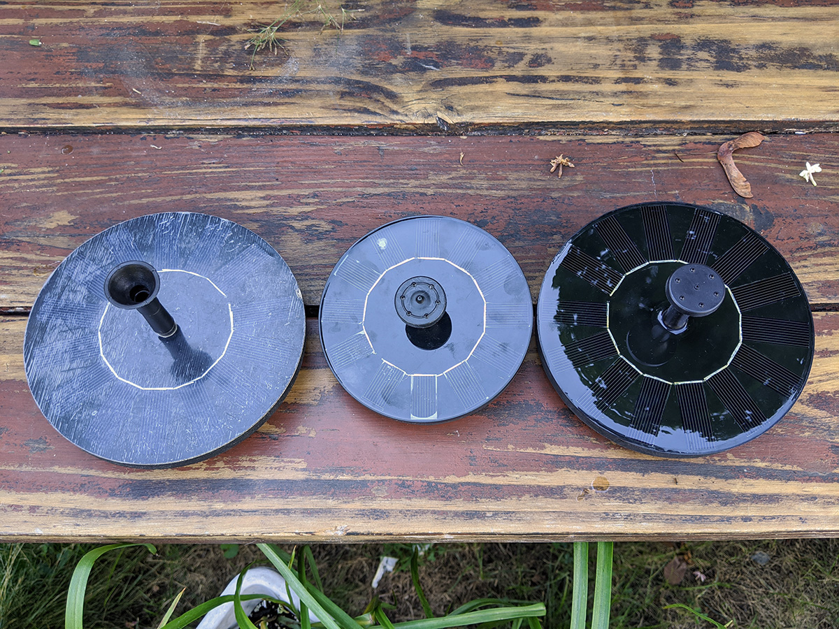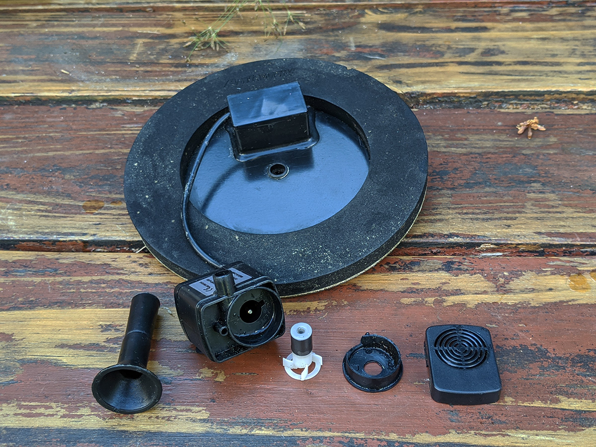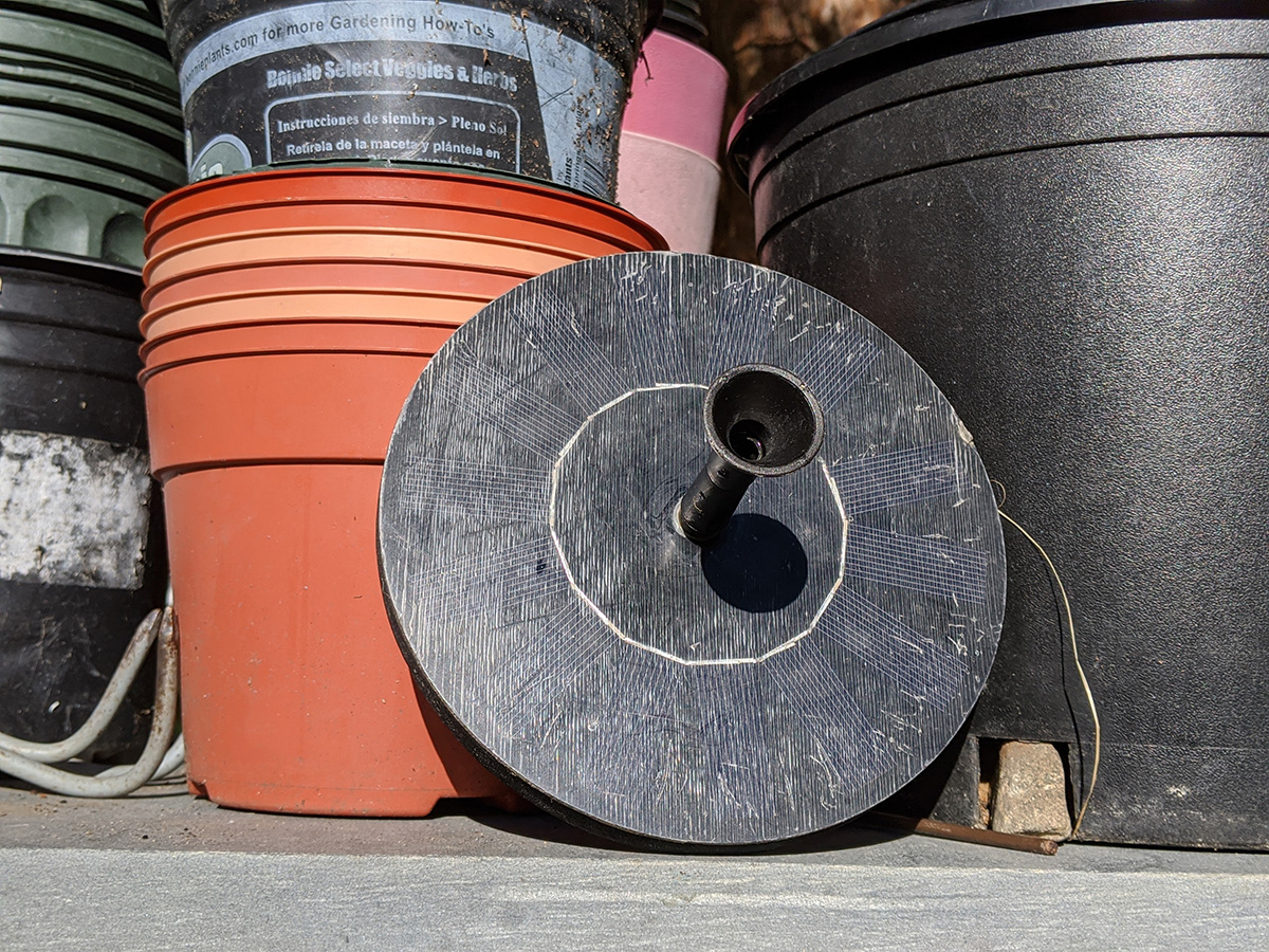 i tried fixing matthew's solar water fountain but it was too badly damaged. i cleaned out the pump section and put everything together but when i exposed it to the sun it didn't do anything. the fountain might've been left outside during the winter, or left to run dry for an extended period of time, whatever the reason, it could be beyond saving, just use it for parts instead. i found our two unused solar water fountains and they work fine. i haven't used it this summer because if hailey sees it she'll attack it.