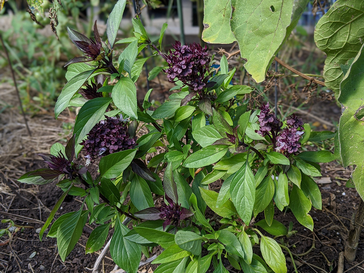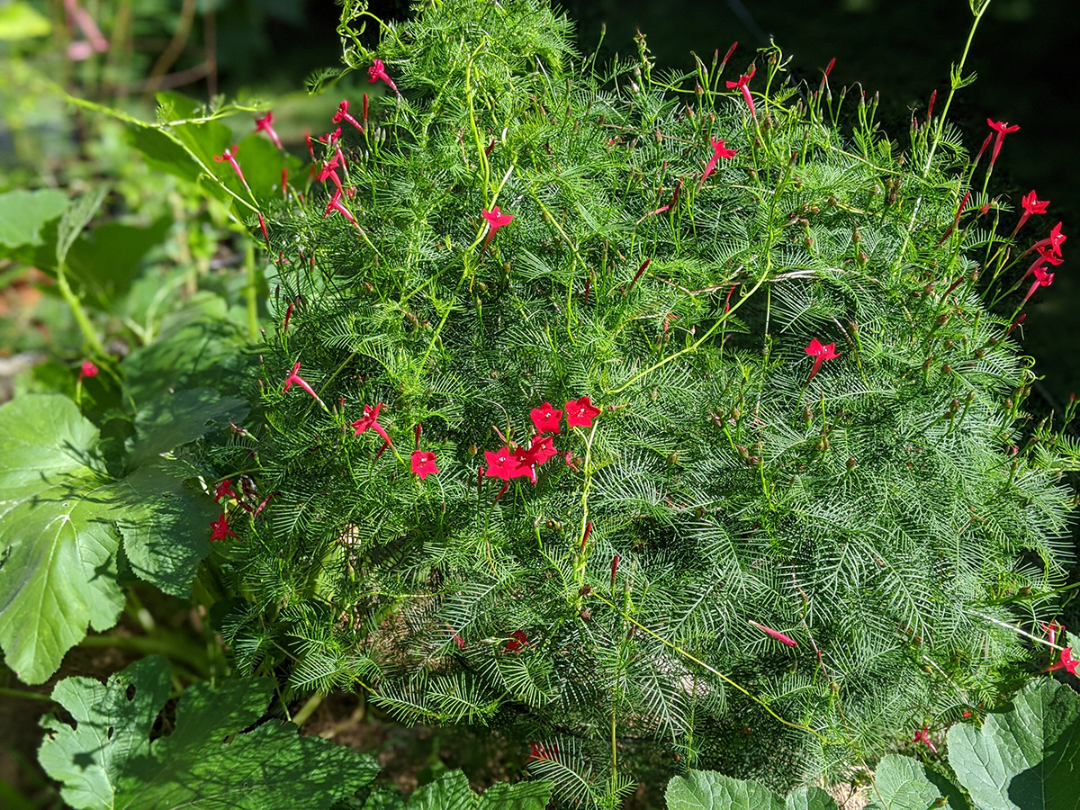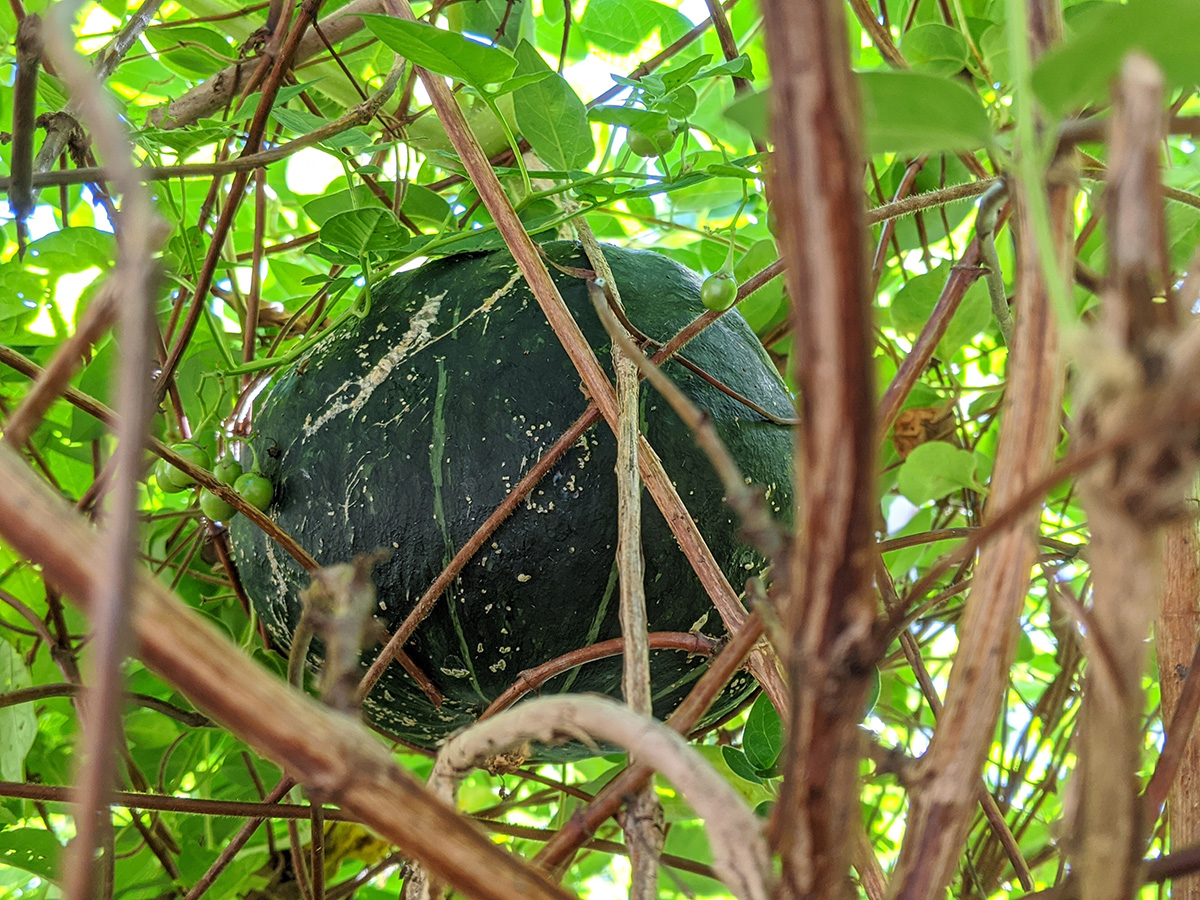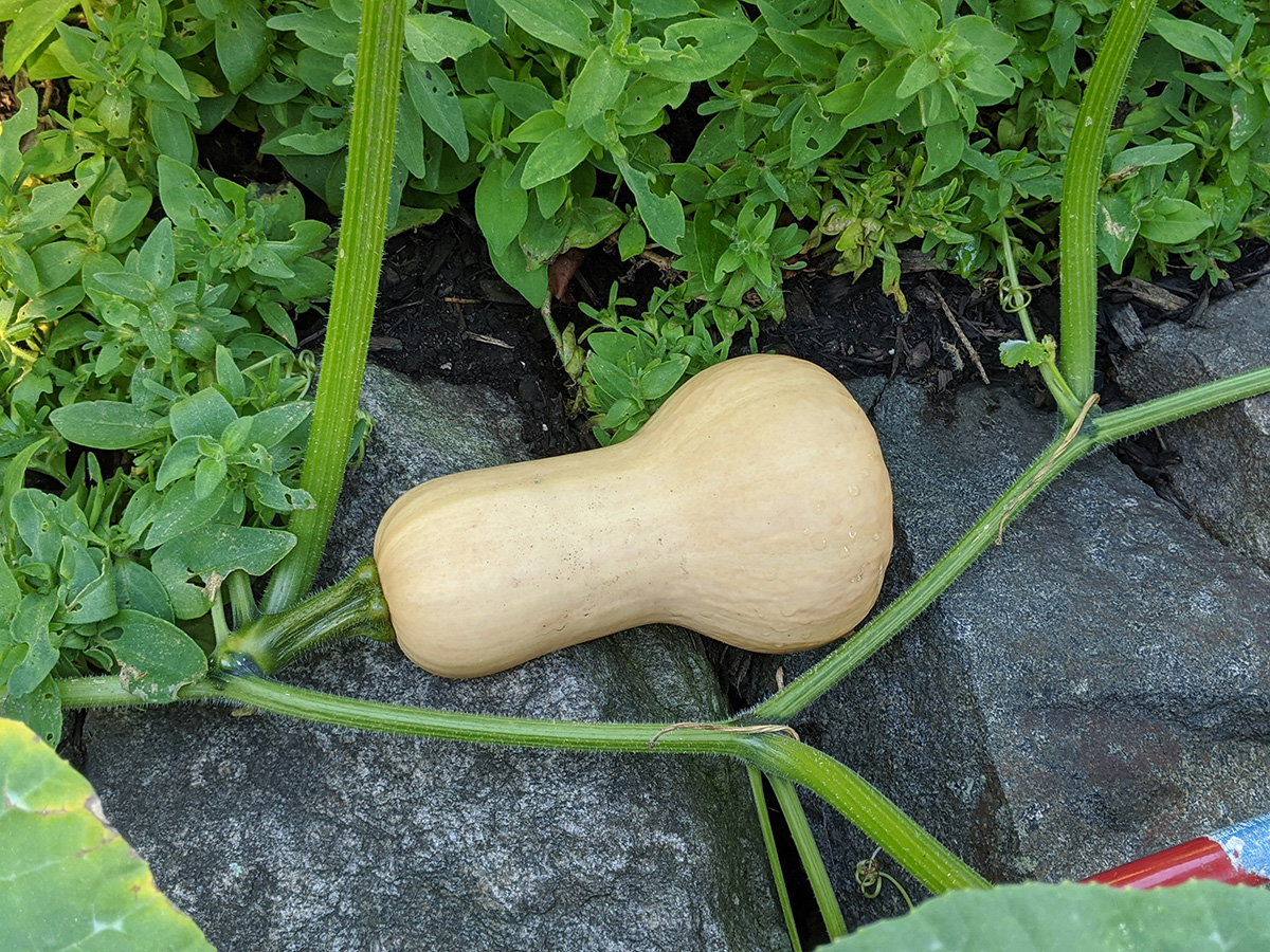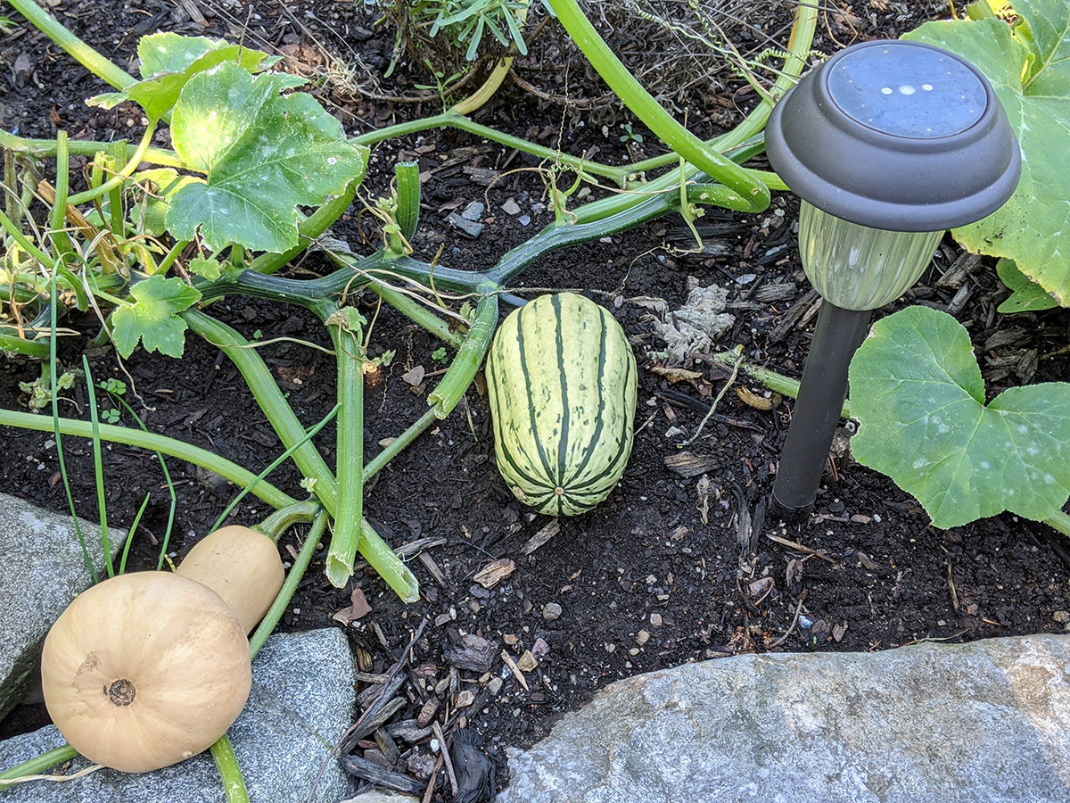 my aunt had already left for her tennis game, only matthew was at home, gardening in the backyard. he gave us a tour of what was growing in late summer. he had a bunch of delicata and butternut squashes (our own delicata and butternut came from him). the flowering vine that i saw back in spring that i thought were clematis is actually a red mandevilla. he also had hops growing in the back of his garden; my father snipped off a branch to propagate some of his own. we dug up two hardy chrysanthemums matthew had transplanted and returned to belmont. we also took a broken solar floating fountain, figuring we might be able to fix it.