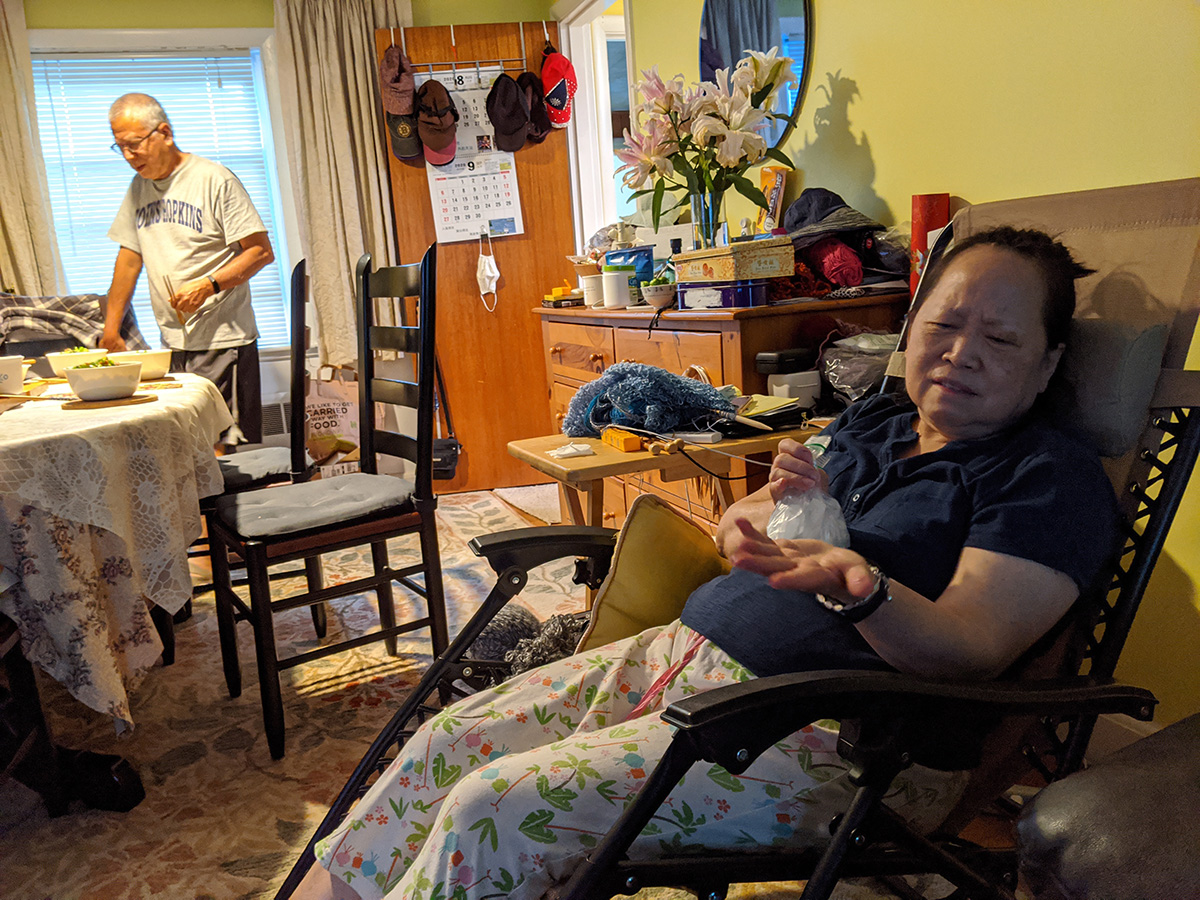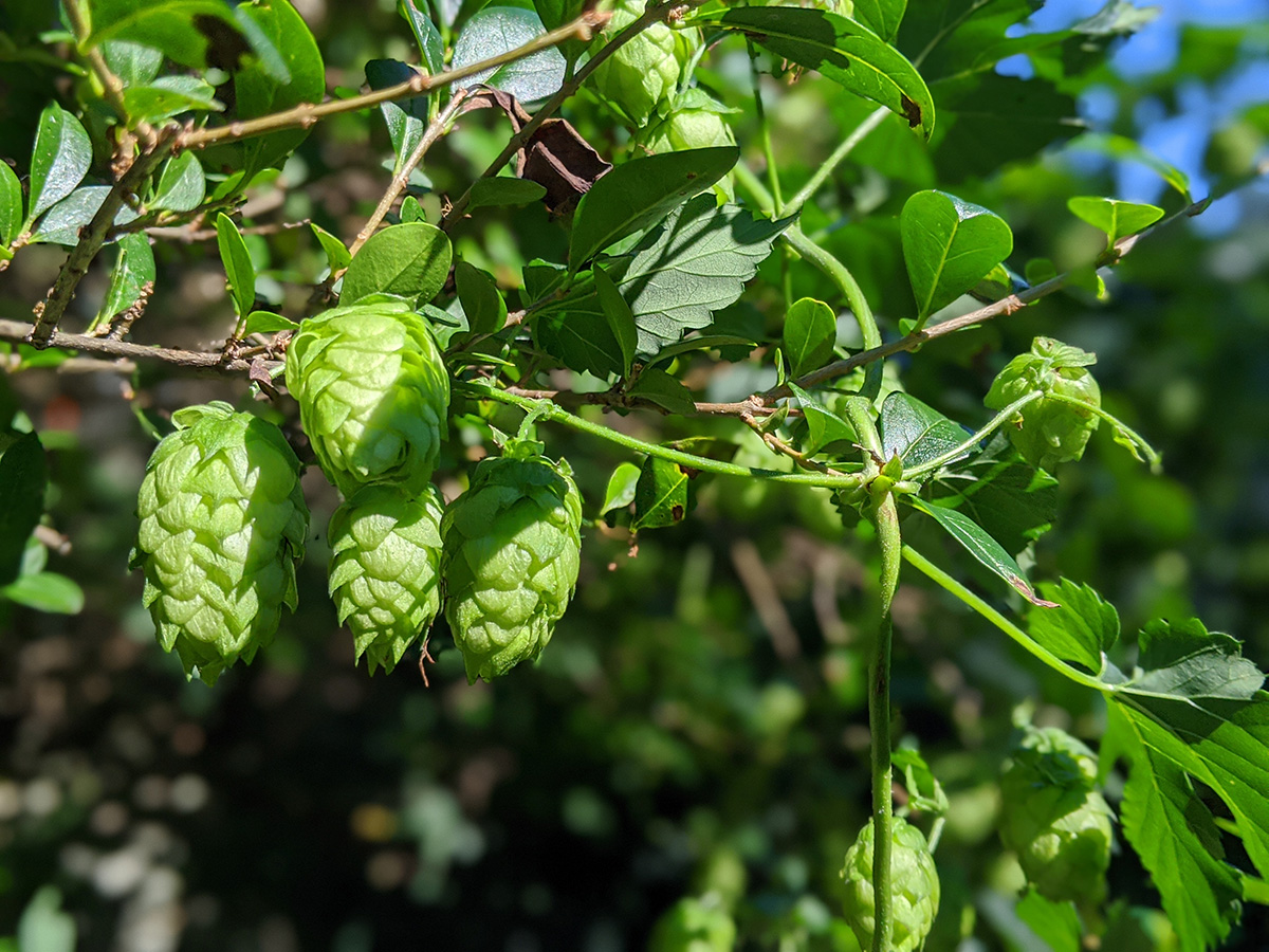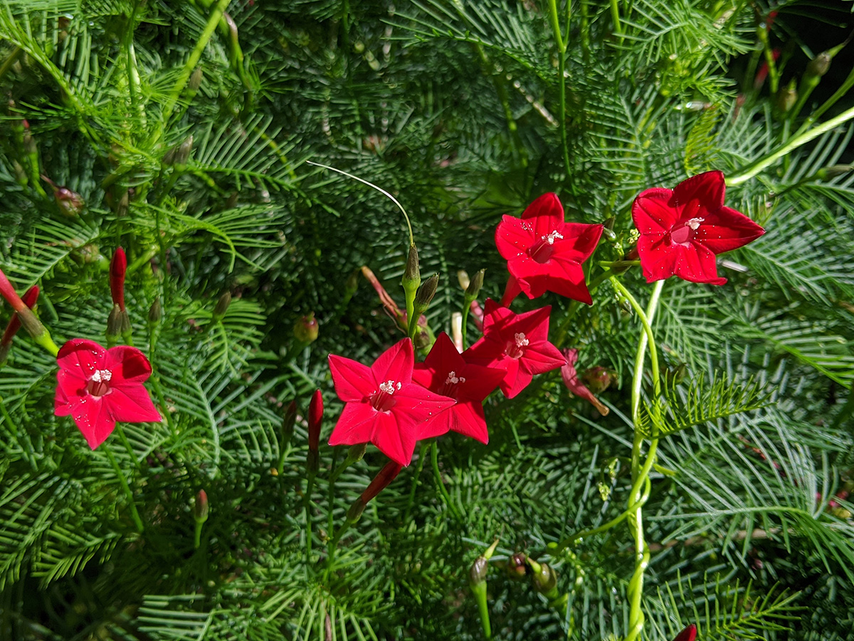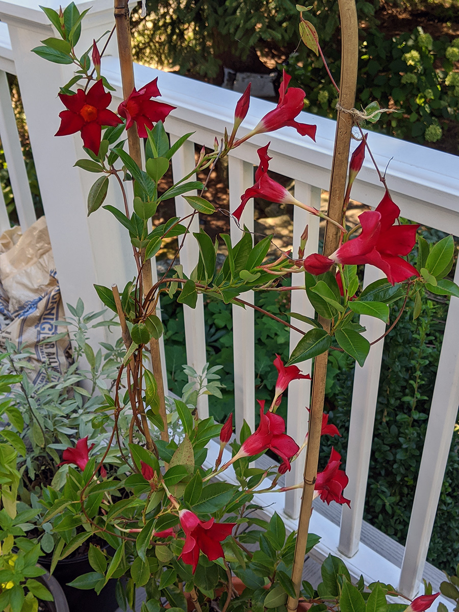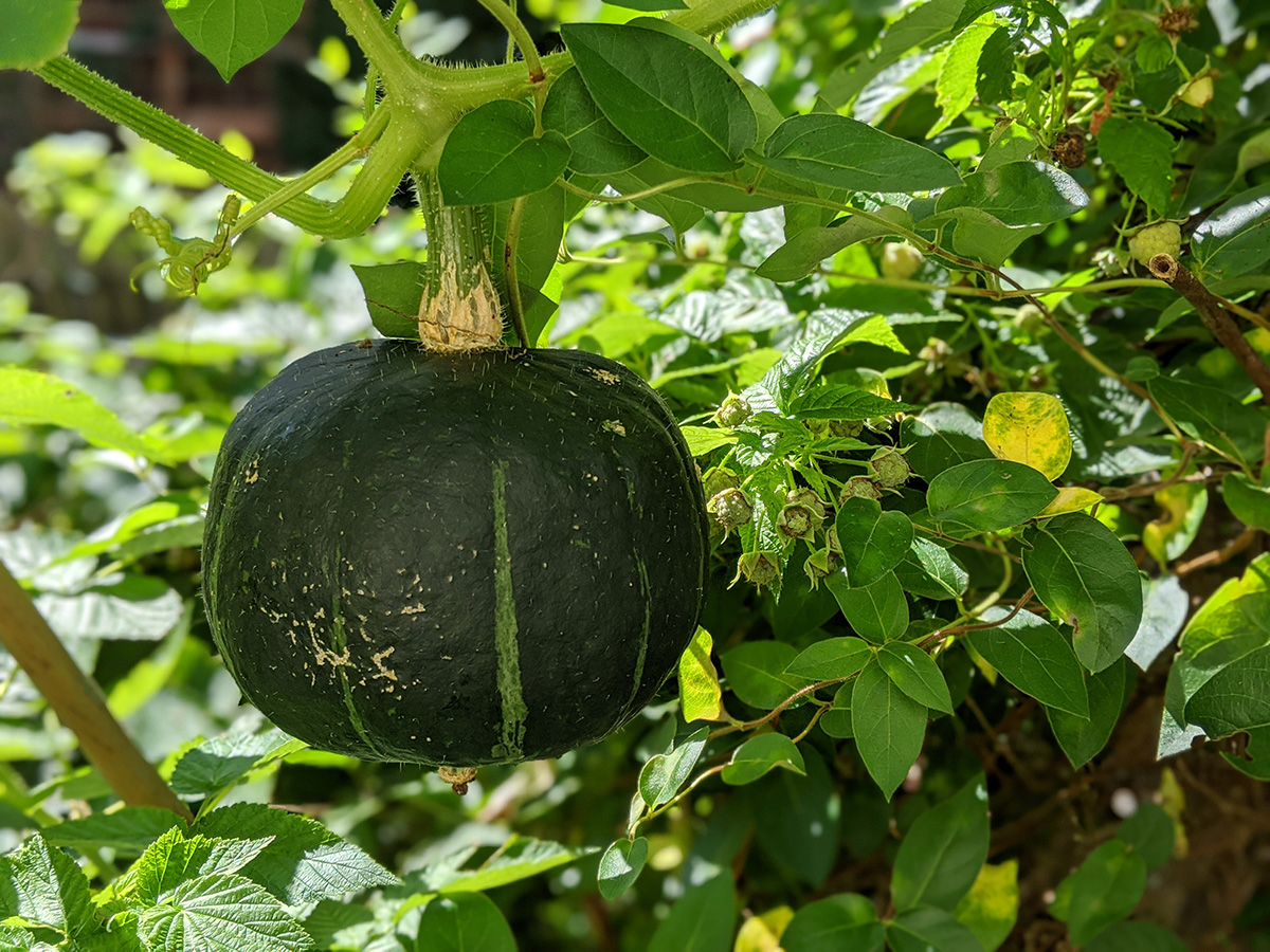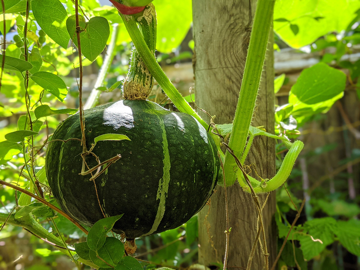 my aunt had already left for her tennis game, only matthew was at home, gardening in the backyard. he gave us a tour of what was growing in late summer. he had a bunch of delicata and butternut squashes (our own delicata and butternut came from him). the flowering vine that i saw back in spring that i thought were clematis is actually a red mandevilla. he also had hops growing in the back of his garden; my father snipped off a branch to propagate some of his own. we dug up two hardy chrysanthemums matthew had transplanted and returned to belmont. we also took a broken solar floating fountain, figuring we might be able to fix it.