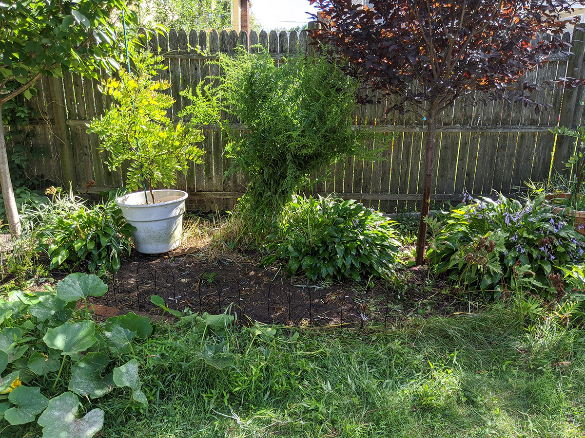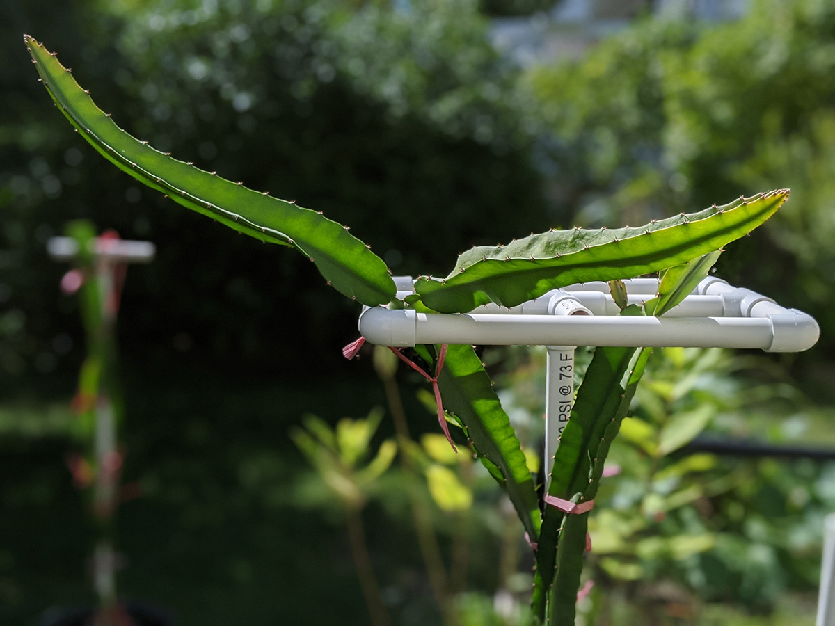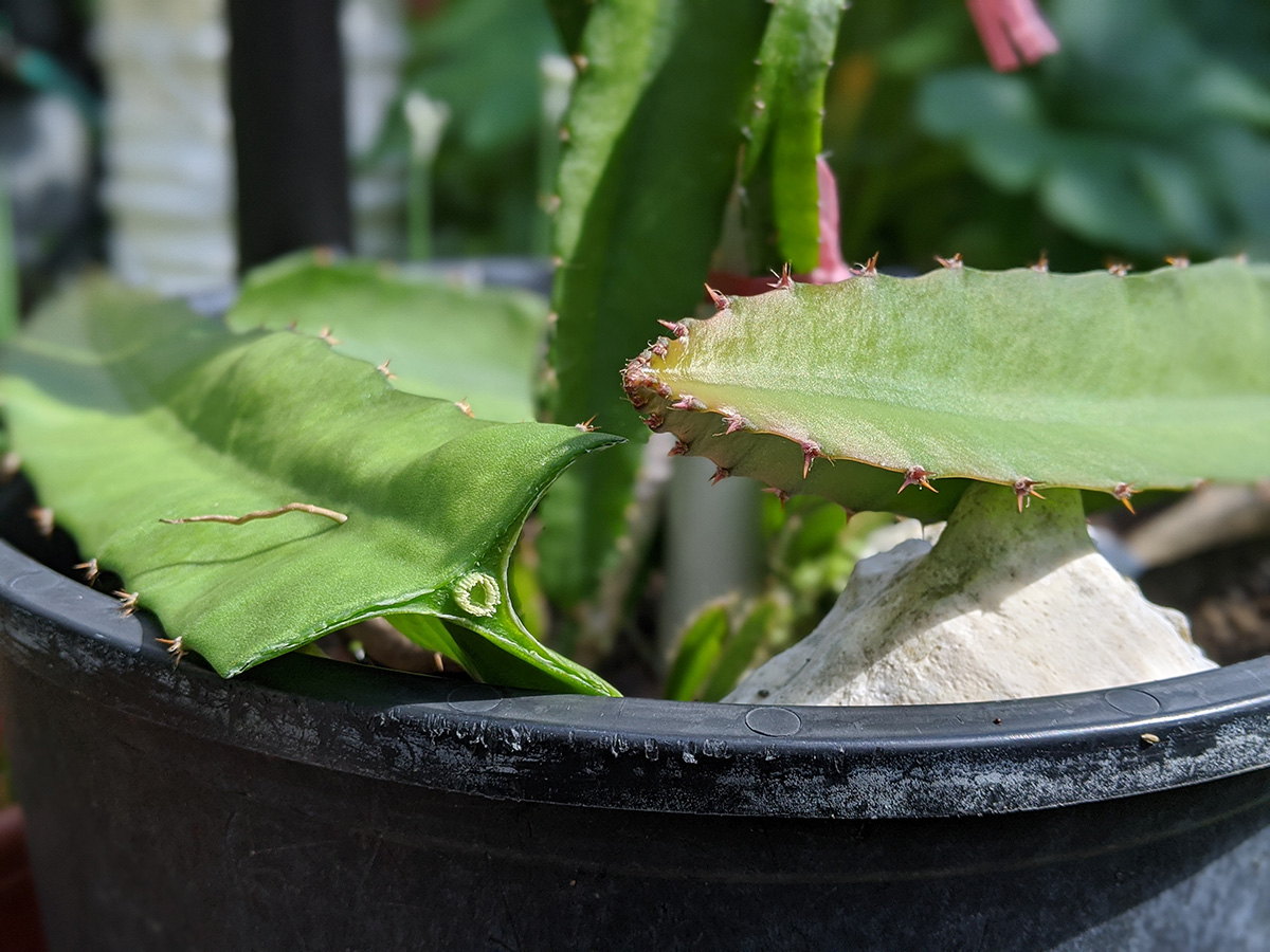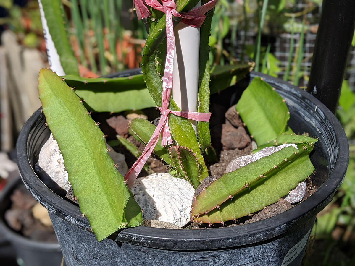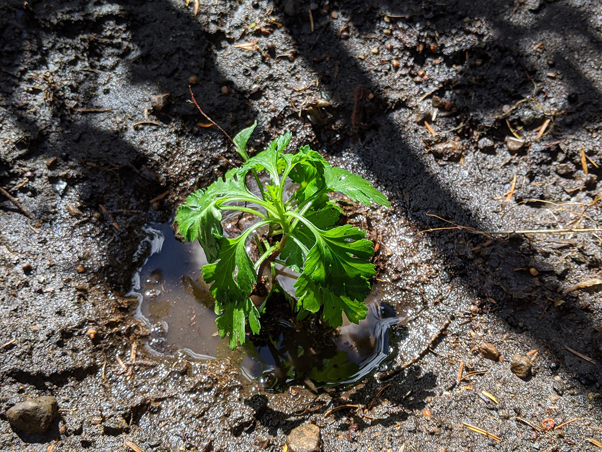 in the backyard, i didn't see any woodchuck damage, but a part of the fence looked like it had been dug from our side of the yard. later my father spotted another new hole, i think the woodchuck used that hole to return to its den. we ended up blocking that hole with some more bricks. we planted the chrysanthemums, one in the front yard on the western side of the house, another in the backyard, between our two flowering trees. i cut back all the ornamental grass and we dug up that whole area. mixed in with the ornamental grass are spiderwort roots. they look similar, but the grass roots look more fibrous and resemble bamboo roots (something i'm intimately familiar with) while the spiderwort roots look like chow mein noodles. we threw out the ornamental grass but saved the spiderworts, replanting everything along with the chrysanthemum. i also helped my father prune his dragon fruit cactuses. later we planted the hop plants, applying some rooting hormone beforehand.