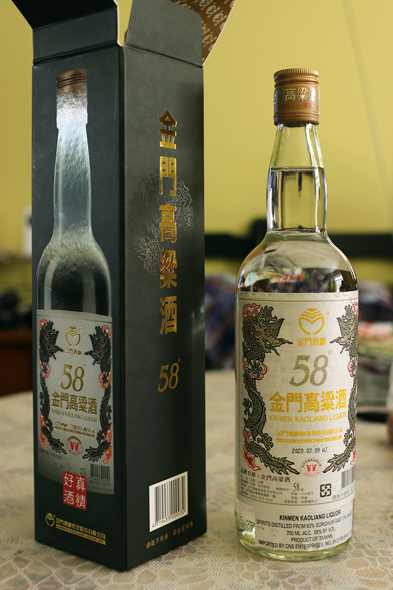 my father was home alone, my mother went out for a walk. i showed my father the bottle of kinmen kaoliang, he immediately went online to check and if it was a vintage bottle. but there was a stamp on the bottle that read 2020.03.09, so barely 6 months old, not an old bottle at all. my father told me that alcohol in taiwan are typically sold in 600ml sizes because it corresponds to the chinese weight measurement of 1 liang which is roughly a pound. 750ml is more of a standard western wine size.