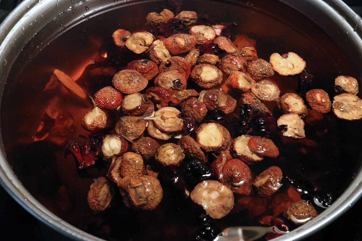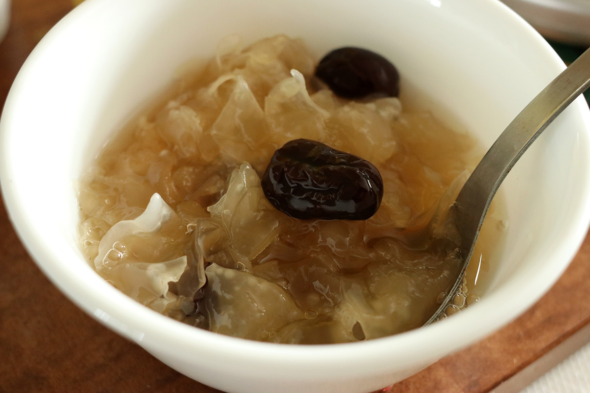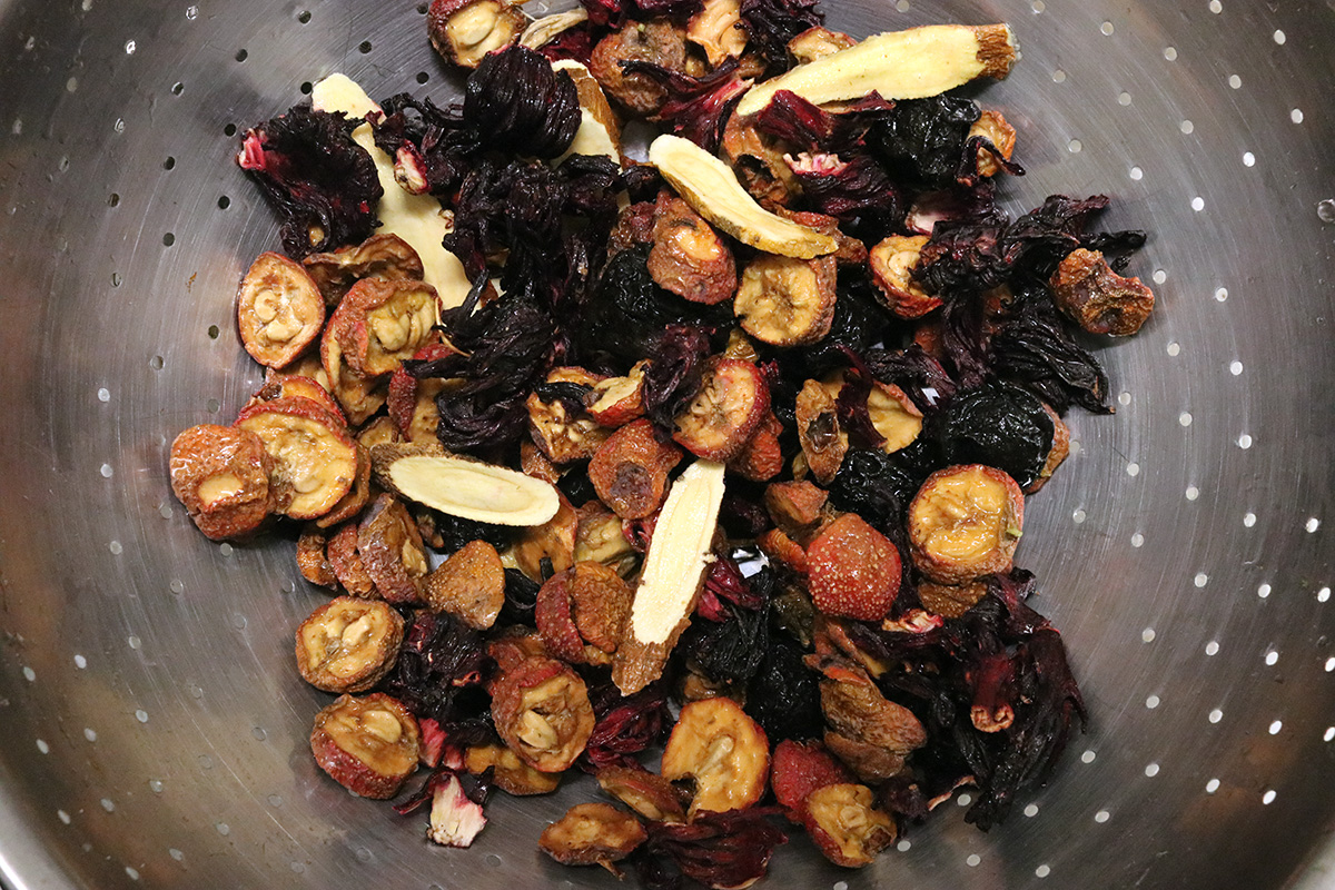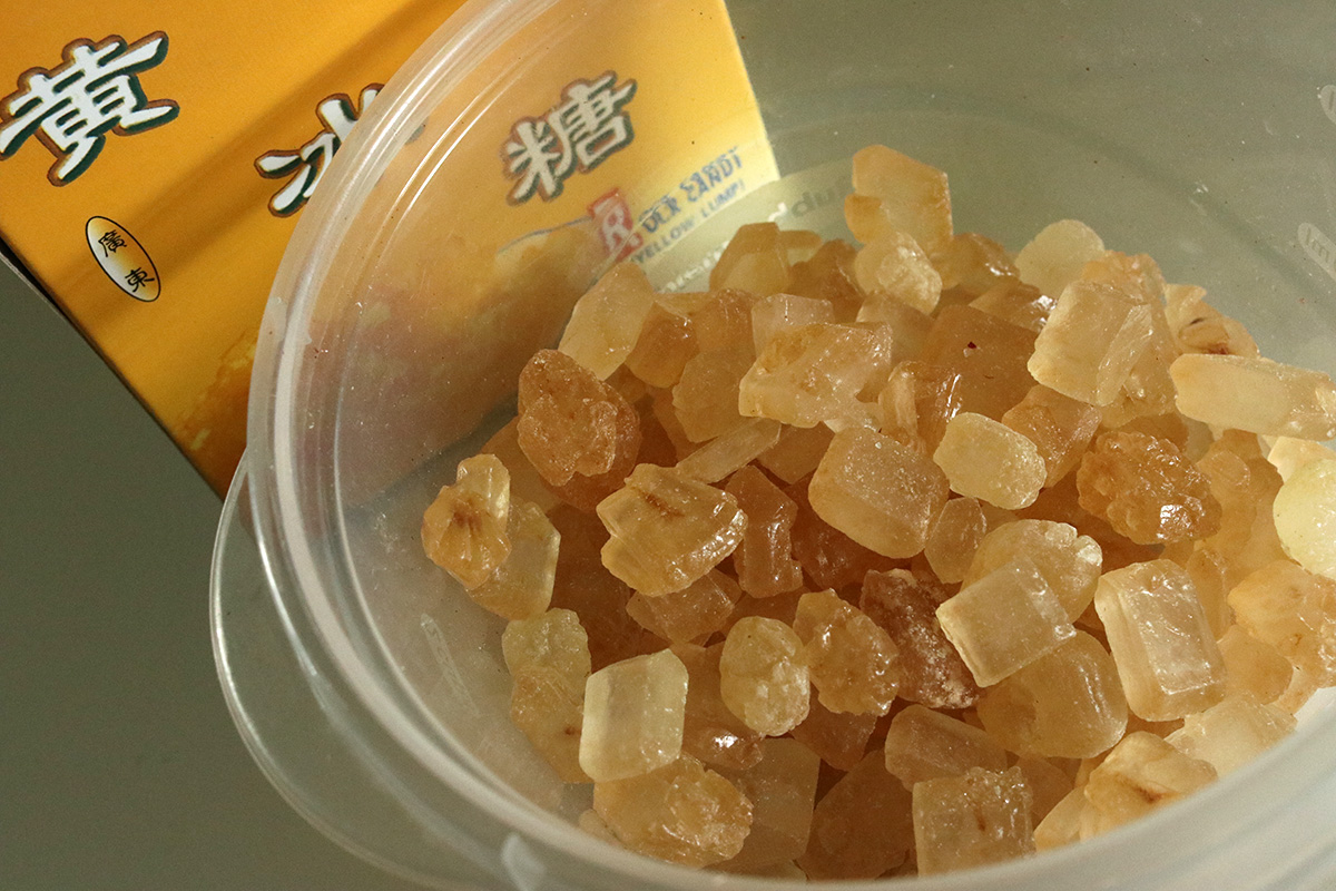 my father made these crispy egg pancakes for lunch, along with some snow fungus (ying'er) soup and sweet papaya. we also made another batch of sour plum drink, measuring out the ingredients and then simmering them in a gallon pot of water for about an hour.