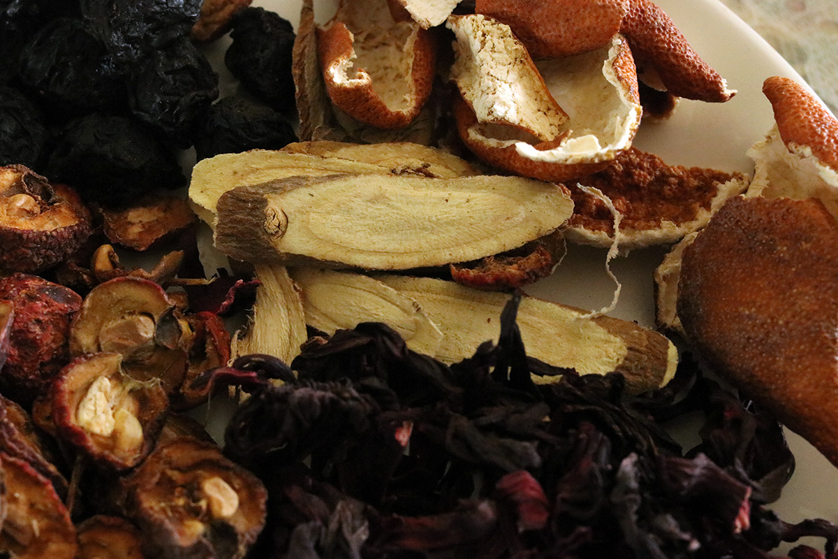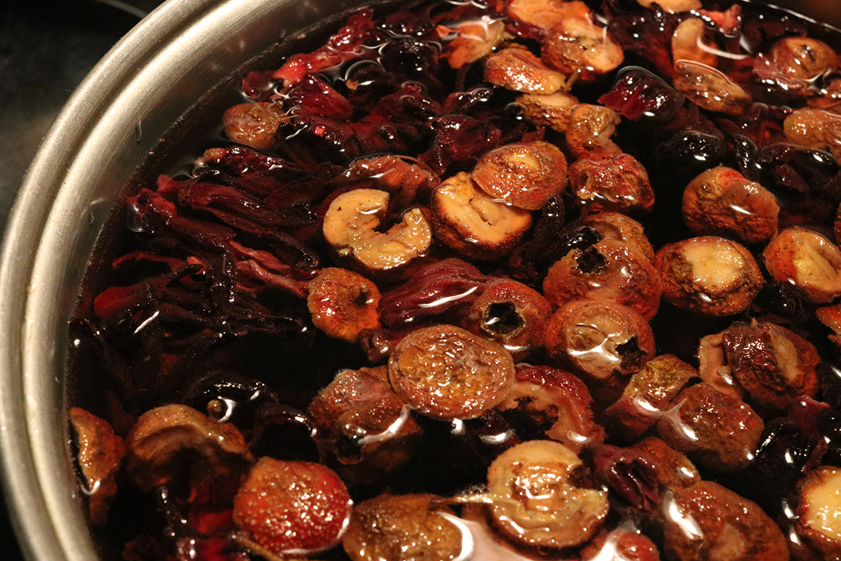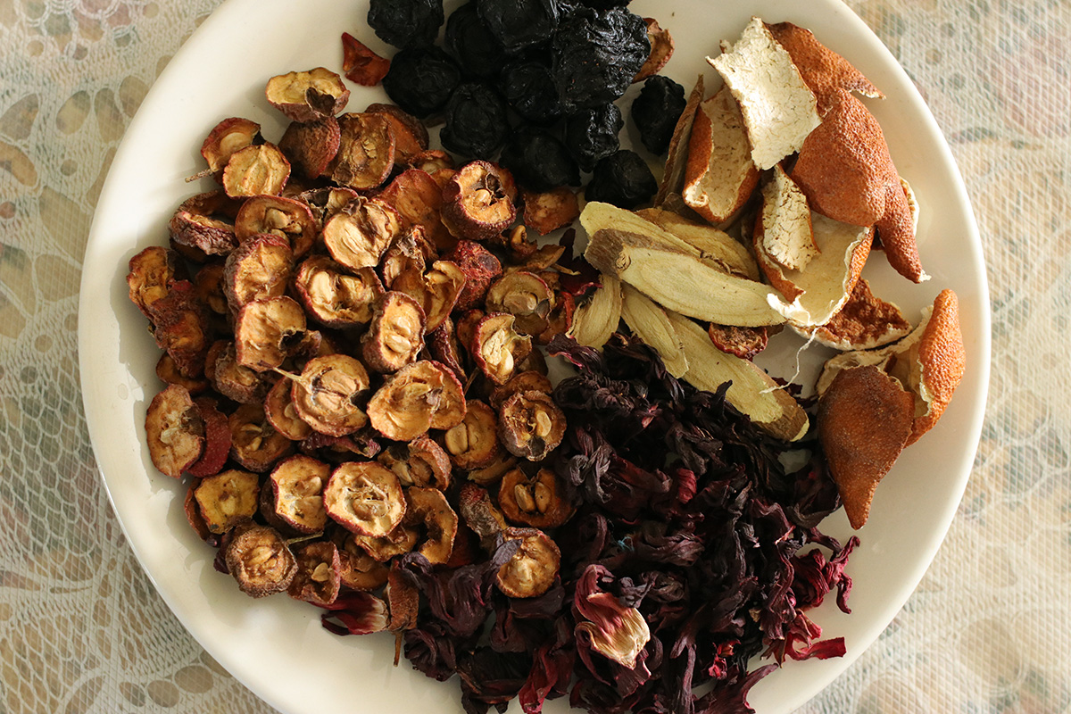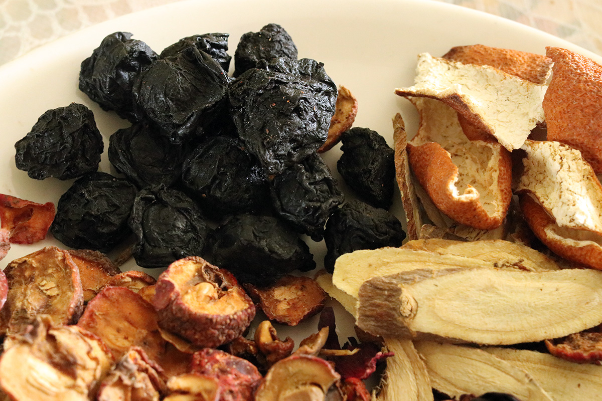 my father made these crispy egg pancakes for lunch, along with some snow fungus (ying'er) soup and sweet papaya. we also made another batch of sour plum drink, measuring out the ingredients and then simmering them in a gallon pot of water for about an hour.