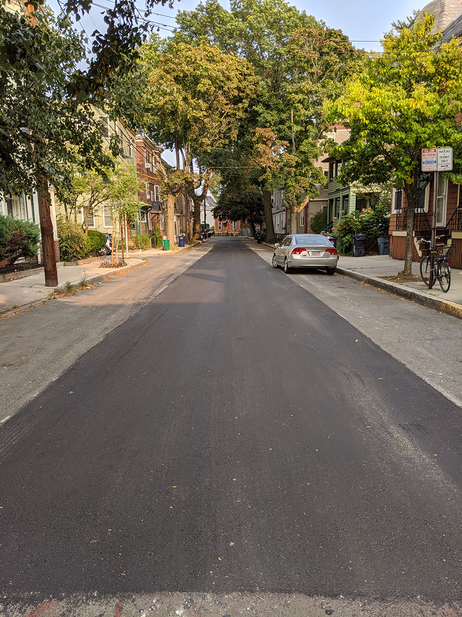 my last 2 cases of the day took my close to my parents' cafe, so i went home to pick up a few things. the road crew had finished paving the street, neighbors were outside admiring their handiwork. i told beth that it looked like a mullet, business on the sides, party in the middle. apparently it made quite commotion, shaking all the houses on the street, even worse than yesterday when they were stripping the road. i went out again, this time via bike. after finishing the 2 addresses (neither of which i closed), i went to the cafe. my parents' were there, along with my sister and her godmother. i then made my way to belmont, where i could get a free dinner, but more importantly, to pick up the lawn aerator that arrived yesterday at home depot.