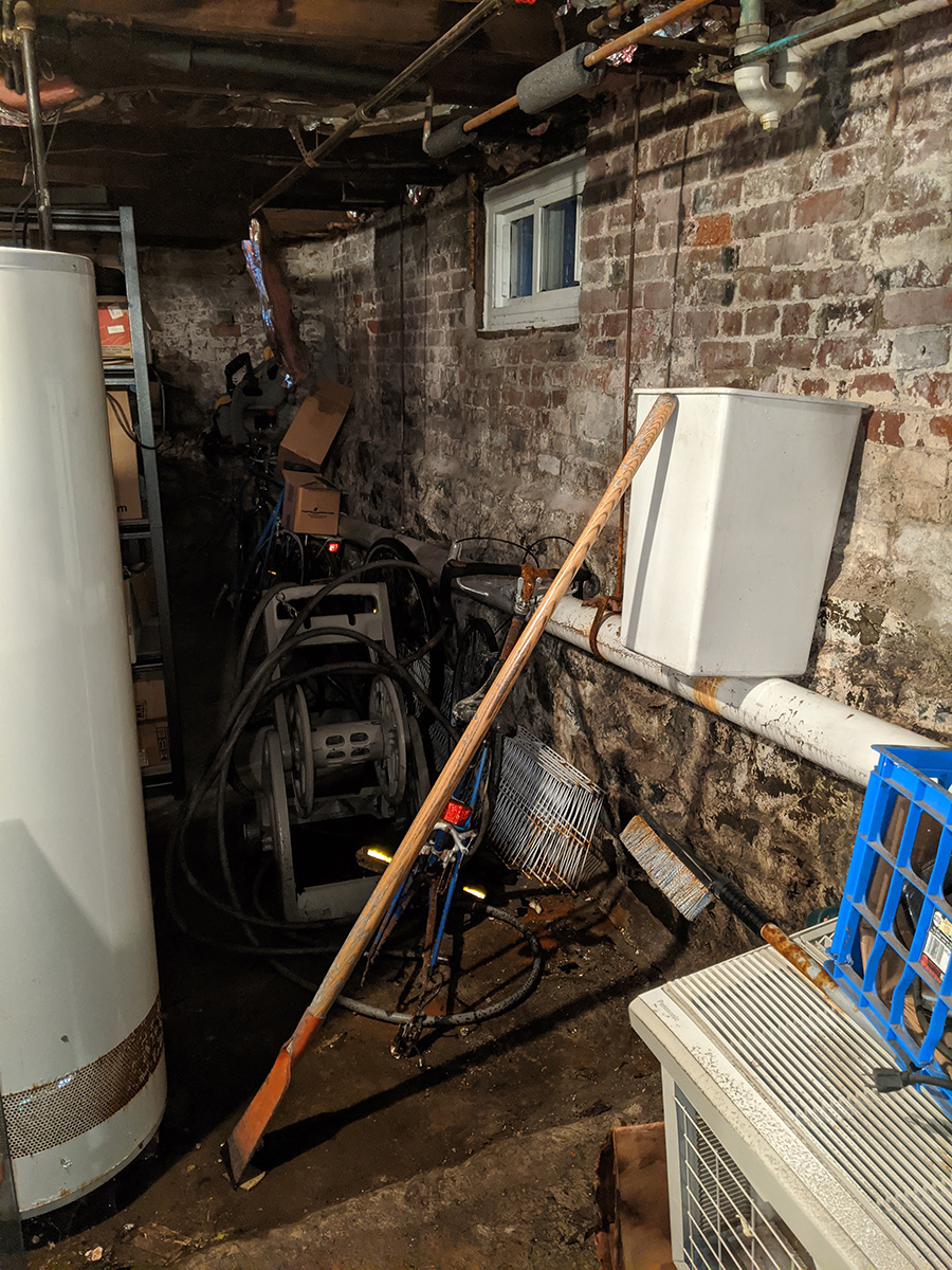 i noticed my hot water had been unusually hot, which also happened to coincide with my upstairs neighbors being back for a few days. so i went down into the basement to check the hot water heater, and sure enough, it was set to B when i normally have it lower than A. but my attention was on something else: there was a bucket propped up against the side of the wall catching a leak that was coming from one of my pipes! there was also a pool of water on the floor. this was something either paul or steve did but they didn't bother to tell me about it. the bucket was already full, who knows how long it's been going on, i nearly broke my back carrying it out in the backyard to dump. at the rate it was leaking, it would probably fill up again in a few hours.