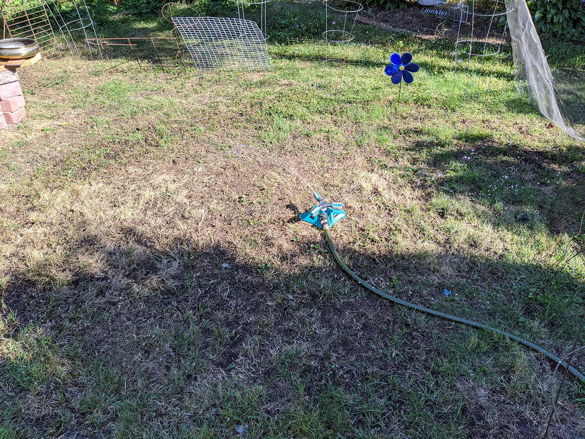 in the late afternoon my father and i were outside doing some yard work. he was trimming the buttercup squash plants and pulling up any dead vines, along with any dead tomato plants. we also trimmed back all the vegetation along the western side of the house, where a bunny surprised us by hopping out of the foliage.