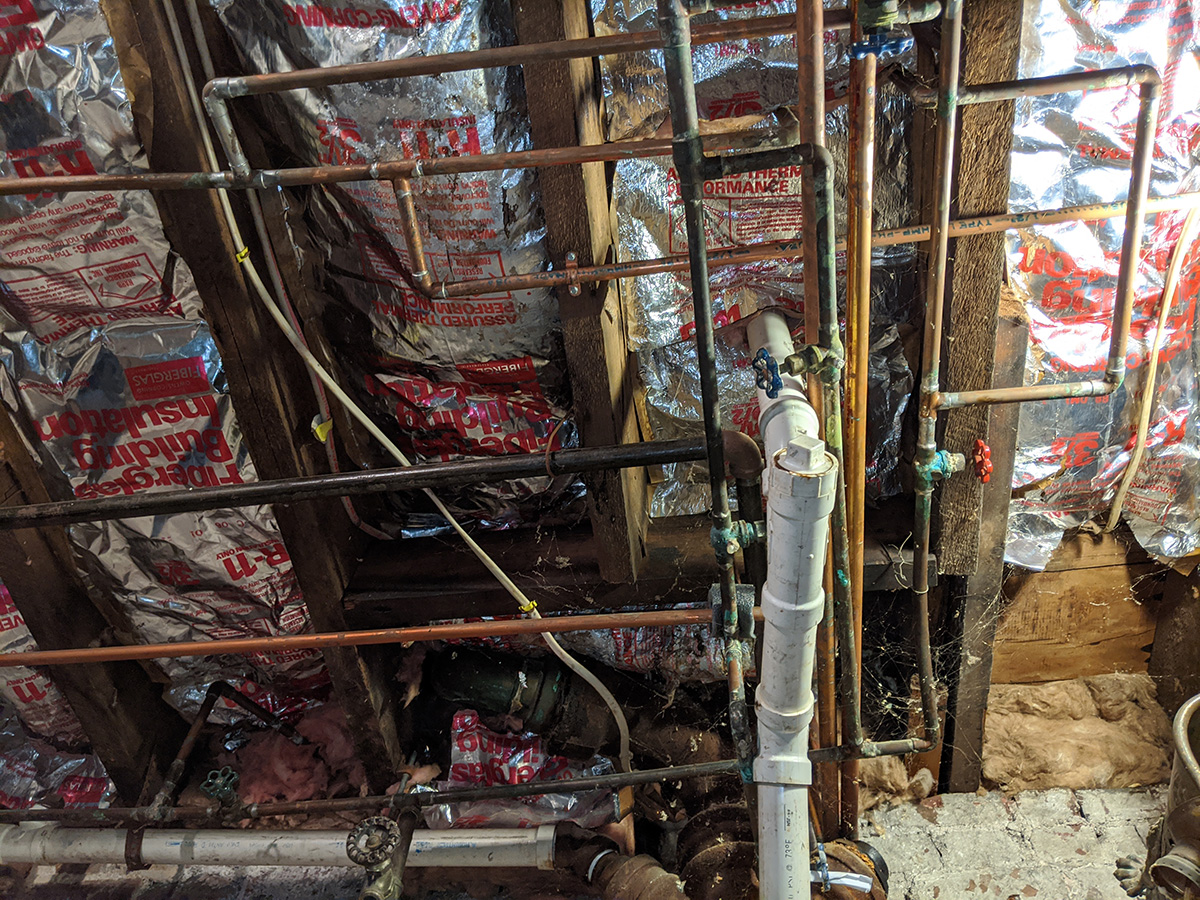 we stopped by my parents' house to pick up the hand truck before going to my place to drop off the hot water heater. my father also got a chance to inspect the plumbing damage himself so he had a better idea what needs to be fixed, in case i can't be there on the day the HVAC guy comes to do the repairs.