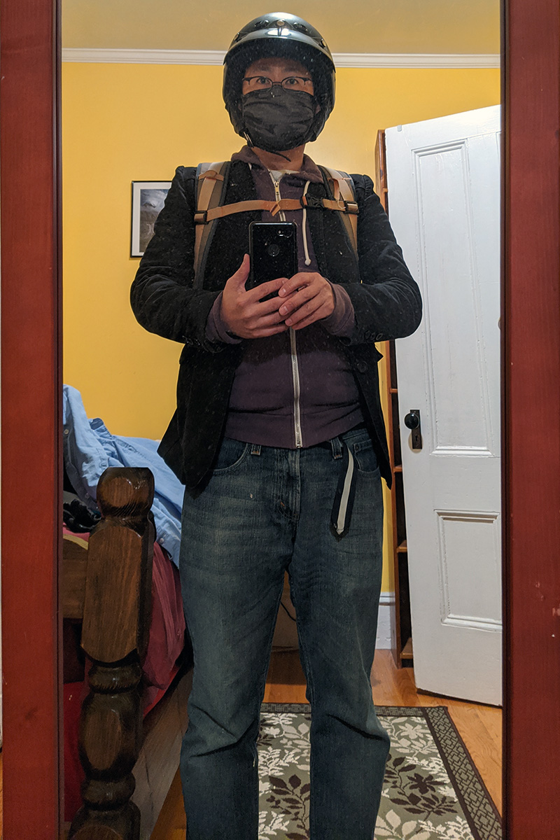 after dinner i got ready to take the motorcycle back to cambridge. when i tried to start it up i wasn't too surprised when the engine just hissed back at me. i used the jump starter to bring the engine back to life.