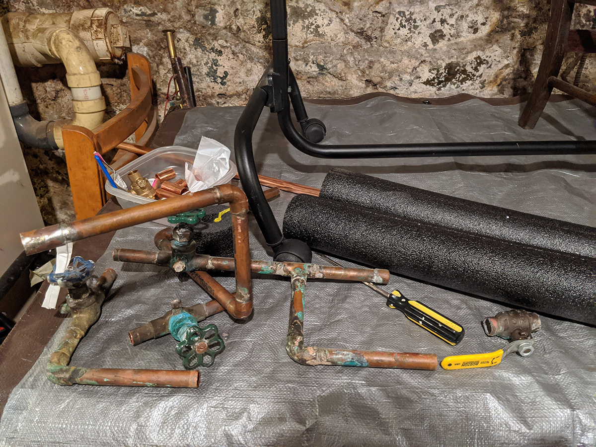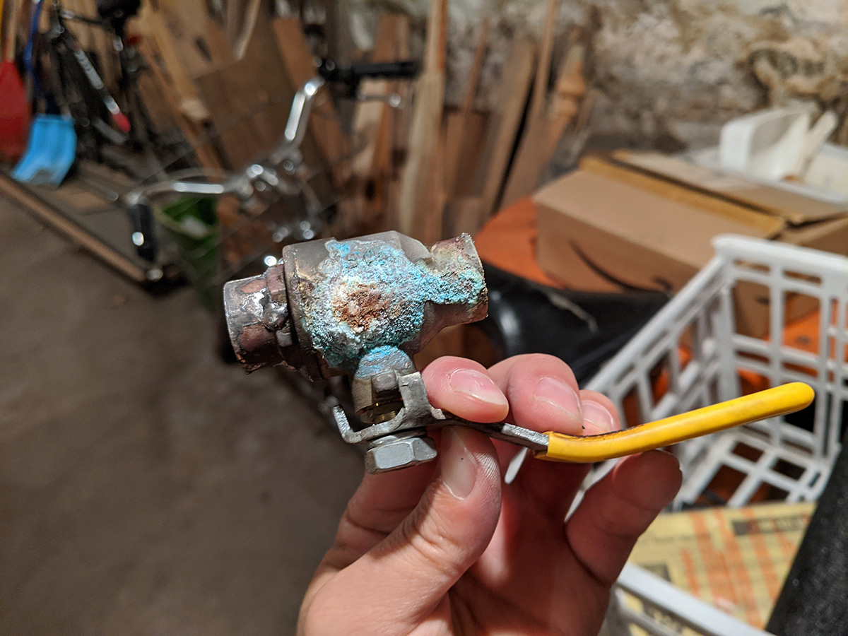 xiaowu ended up working until almost 7pm. my father came into the house briefly as xiaowu was starting to pack up, asked me to get $300 cash ready to pay xiaowu before he left. i was happy that my pipes were no longer leaking and i could flush the toilet again, but the hot water pressure on my sinks are still low, so i still need to contact a professional plumber to fix that problem as well as my leaking bathtub drain. i also realized while i was cleaning up the basement that he forgot to replace a corroded valve, the one that feeds cold water to my sinks. i suppose the plumber can easily replace it when he arrives, especially since i already have the spare valve.