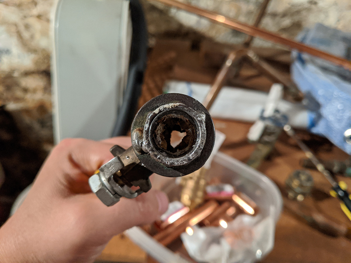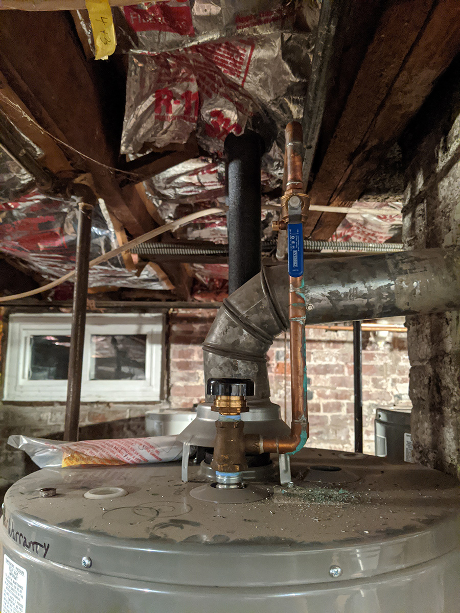 any corroded gate valves we switched out with new ball valves. we had all the spare parts ready for xiaowu to use, which made his work easier as he could repair immediately and not have to go out and get the parts. besides my plumbing, xiaowu also replaced the corroded cold water intake valve on steve and paul's hot water heater. for some reason the inside was all clogged up with debris. he also replaced a leaking segment of their copper piping, connecting it so it had a more direct path than what they had before, which included a dead end piping.