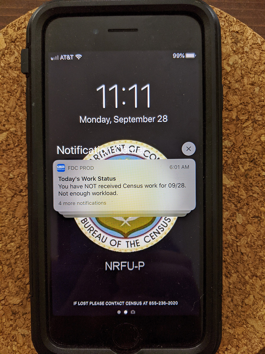 just as i'd hoped, i didn't have any census work today. my supervisor did send us a group text to let us know if we wanted to get paid we could fill out the exit interview survey and charge it as regular work. later in the day i saw online postings from enumerators still working the field that their supervisors have told them to stop what they're doing and return home. turns out commerce secretary wilbur ross - a trump appointee - has proclaimed october 5th to be the end date for the census count, despite a federal judge extending the deadline through the end of october.