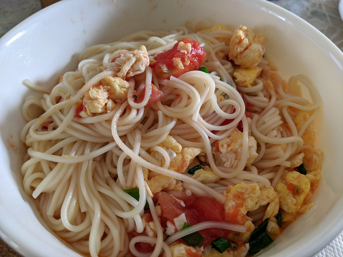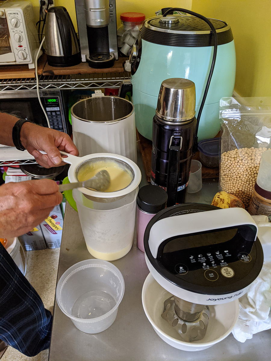 my father made a fresh batch of soy milk, this time adding a bit of squash for sweetness. it still wasn't sweet enough and i ended up adding a tbsp of sugar. i prefer soy milk with some red chinese jujubes. my mother made thin noodles for lunch.