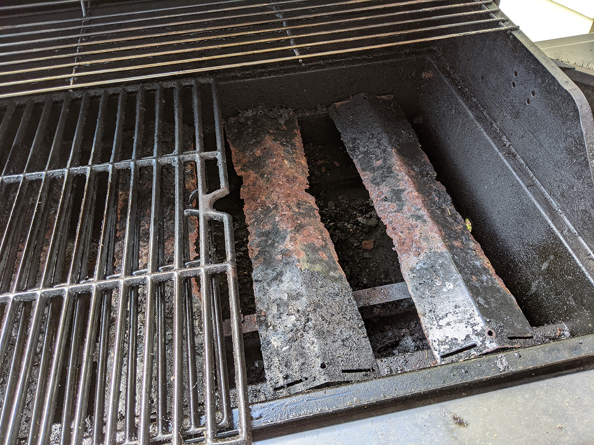 in the late afternoon my father and i went outside and replaced the old rusty burner covers on our gas barbecue with new ones i ordered from amazon.com. the new ones are big enough that it's now hard to see if the burners have ignited, but they will prevent dripping grease from causing flare ups hopefully.